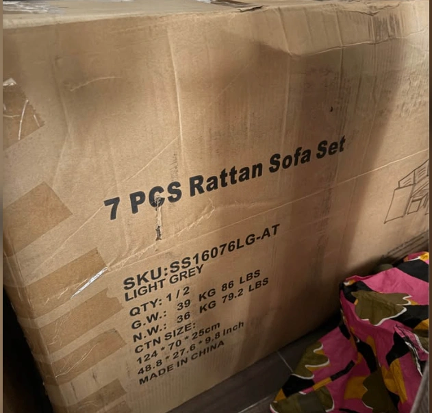 Selling a brand new 7-piece rattan patio sofa set, still in the original box (never opened/assembled).