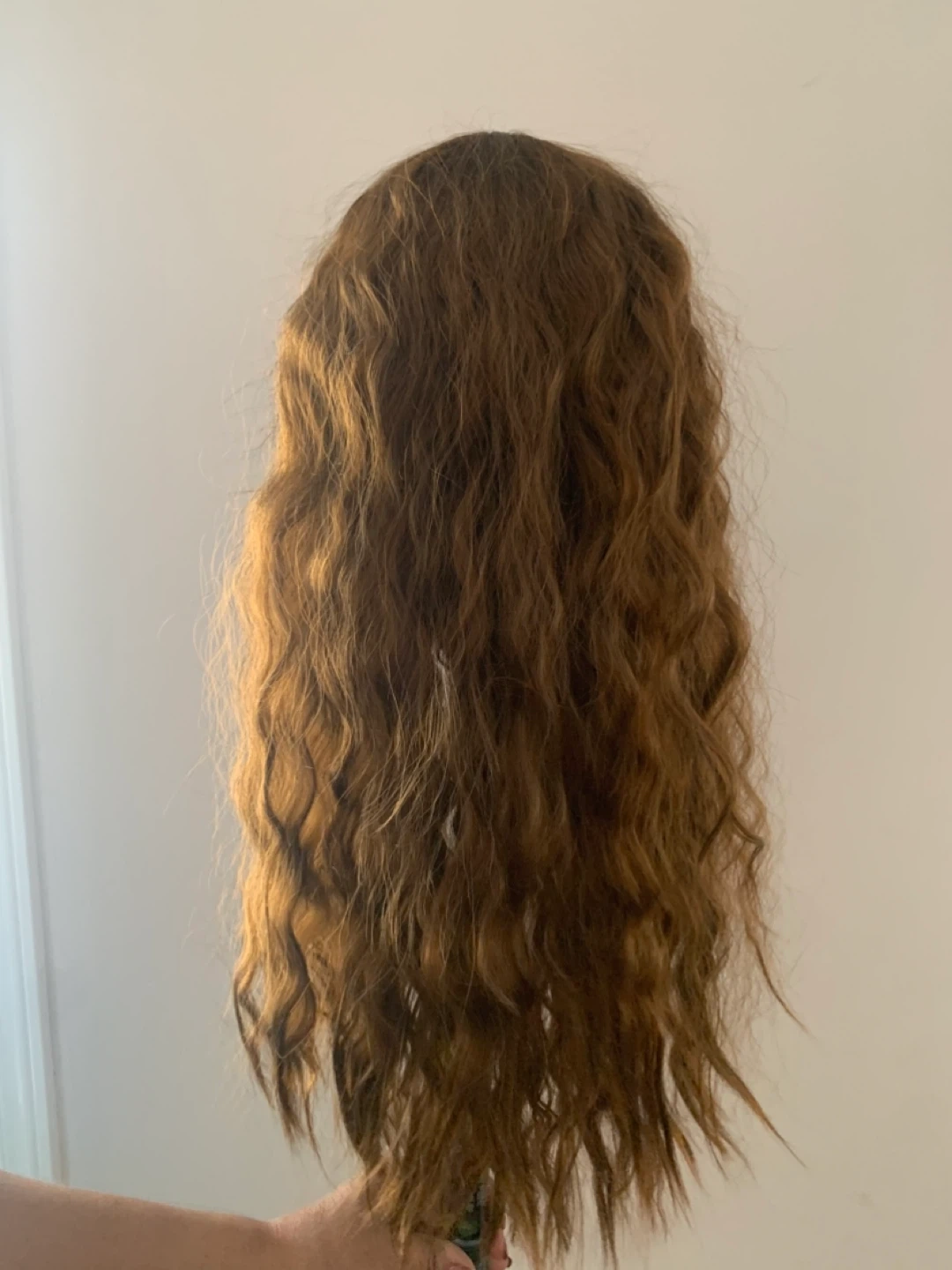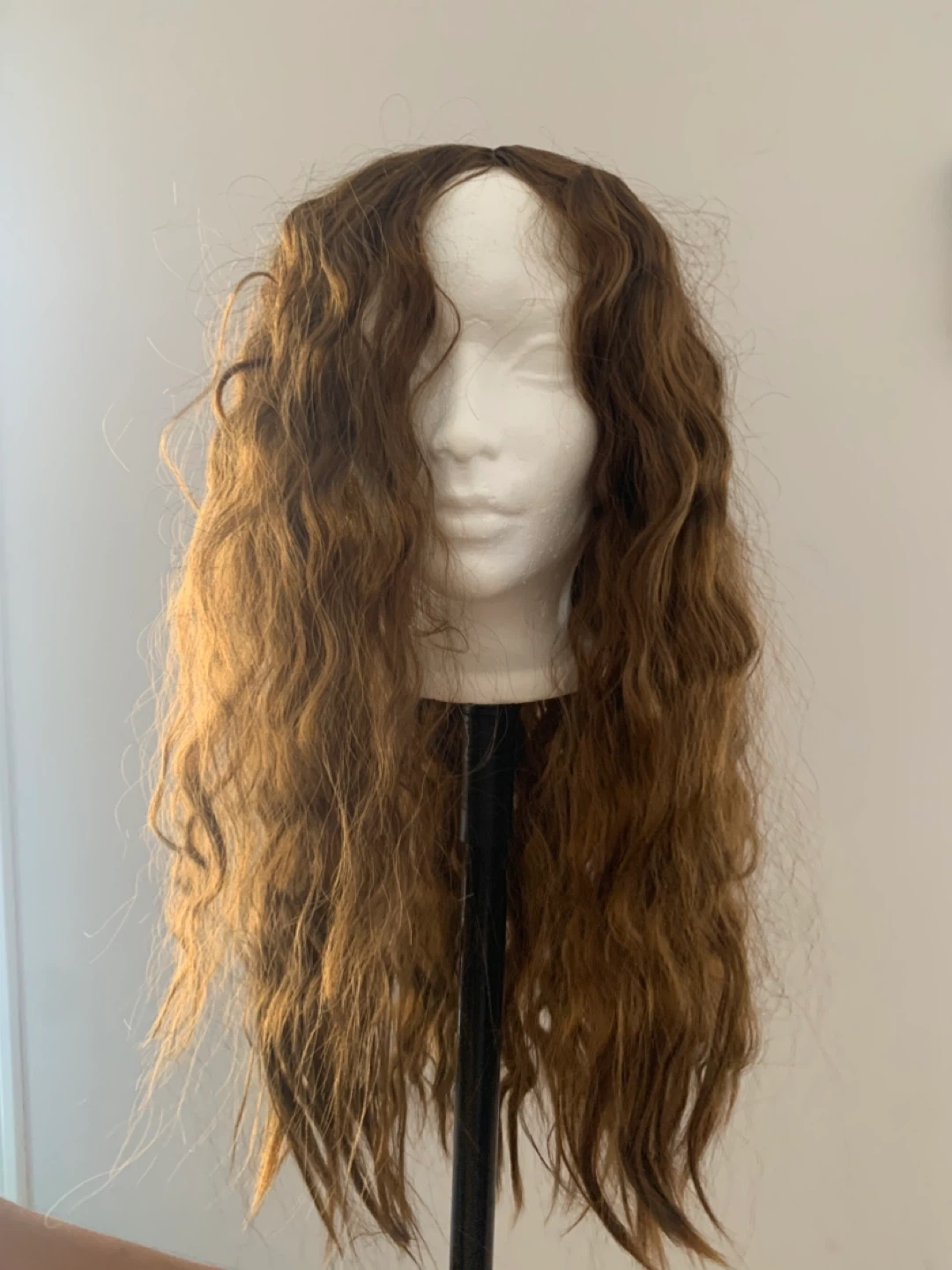 This wig features long, wavy brown hair. It has a natural look and feel. The wig is a versatile addition to any costume or style.