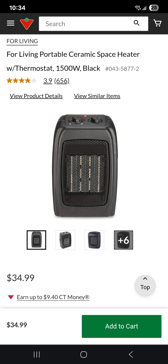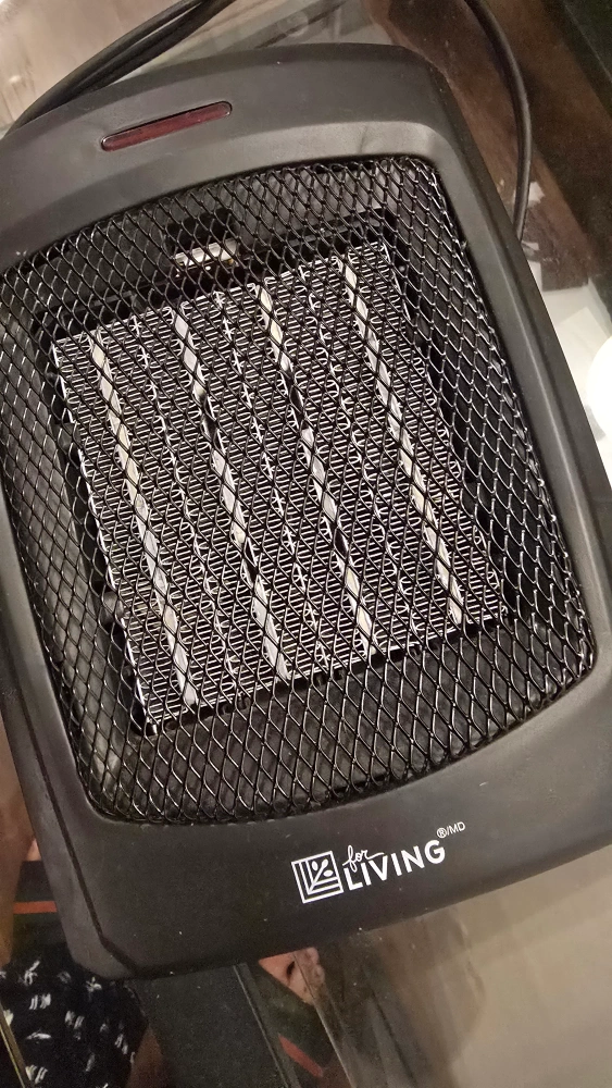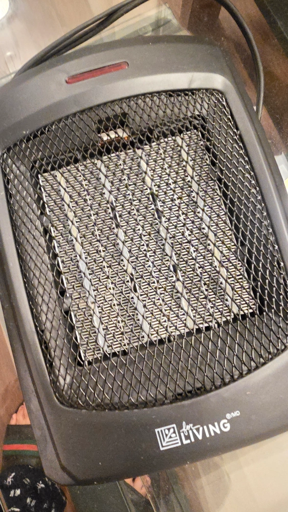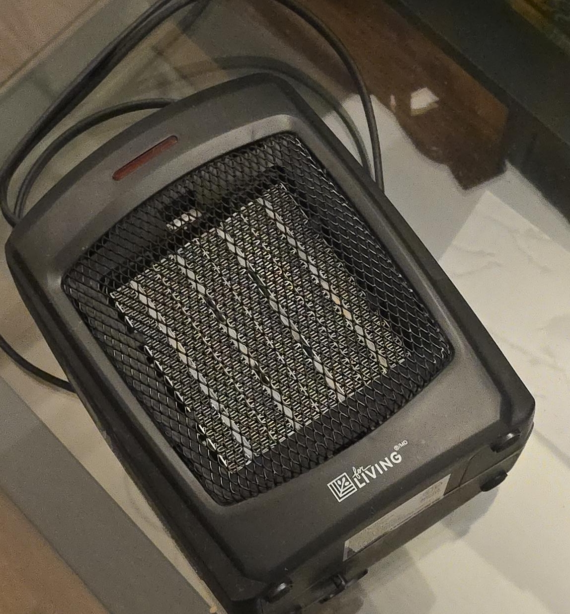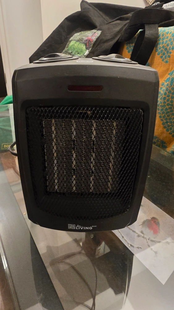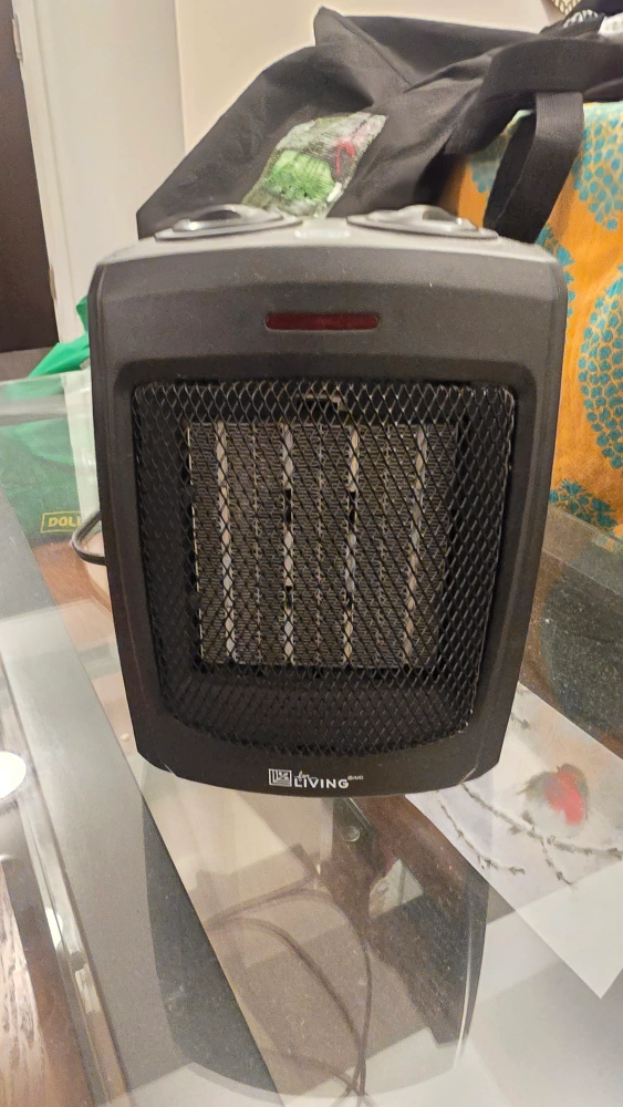 I'm selling a For Living portable ceramic space heater. It's black and has a thermostat. It's 1500W. Originally bought for $34.99