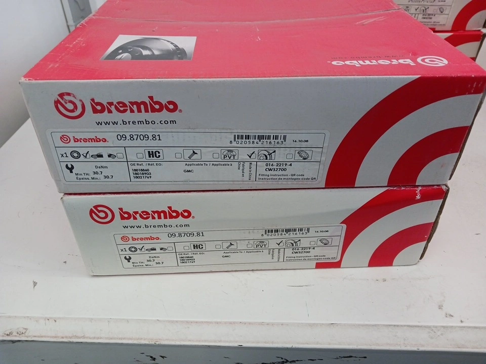 15New unopened Brembo Brake Rotors 09.8709.81 Fitment: New unopened Brembo Brake Rotors 09.8709.81 Fitment: 1991 to 1993 BUICK FULL SIZE BUICK FWD 1994 to 1997 BUICK LESABRE 1994 to 1996 BUICK PARK AVENUE 1992, 1993, 1995, 1996 BUICK RIVIERA 1993 CADILLAC ALLANTE 1994 to 1996 CADILLAC DEVILLE 1992 to 1996 CADILLAC ELDORADO 1990 to 1993 CADILLAC FULL SIZE CAD FWD 1992 to 1996 CADILLAC SEVILLE 1993 to 1997 CHEVROLET CAMARO 1992 to 1996 CHEVROLET LUMINA APV 1995 to 1996 OLDSMOBILE AURORA 1994 to 1997 OLDSMOBILE EIGHTY-EIGHT 1991 to 1993 OLDSMOBILE FULL SIZE OLDS FWD 1996 to 1997 OLDSMOBILE LSS 1994 to 1996 OLDSMOBILE NINETY-EIGHT 1997 OLDSMOBILE REGENCY 1992 to 1996 OLDSMOBILE SILHOUETTE 1992 OLDSMOBILE TORONADO 1993 to 1997 PONTIAC FIREBIRD