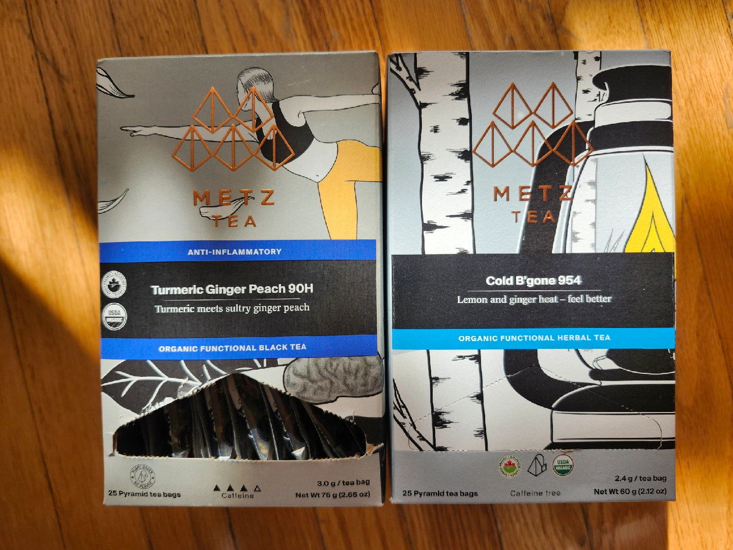 Giving away two boxes of Metz Tea! One is Turmeric Ginger Peach, which is anti-inflammatory and a black tea. The other is Cold B'gone, a lemon and ginger herbal tea to help you feel better ๐ From a smoke-free, pet-free home ๐