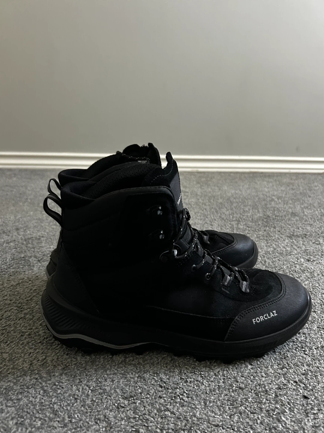 31Selling a pair of Forclaz hiking boots in black. They are in great shape and ready for your next adventure! Size EU 44, US 10