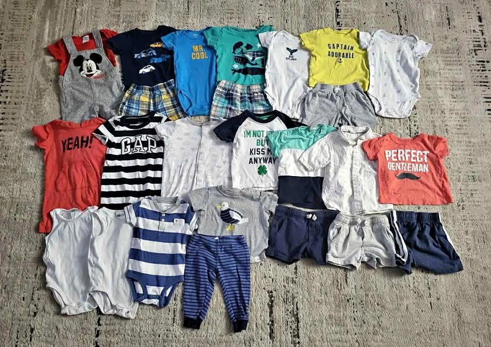 Boys 6-9 months summer clothes. Mostly Carters brand. No stains. Excellent condition. Cash only. If ad is up it's available. Check out my other postings for different sizes. 3 one pieces rompers, 4 t shirts, 3 shorts, 2 onesies, 1x 2-piece set, 4x 3-piece sets (top/bottom/onesie).
