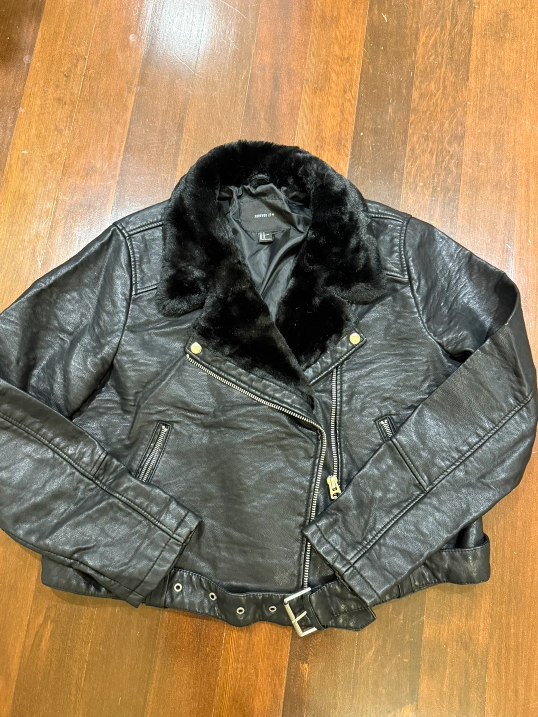 Forever 21+ Black Faux Leather Jacket - Size 1X