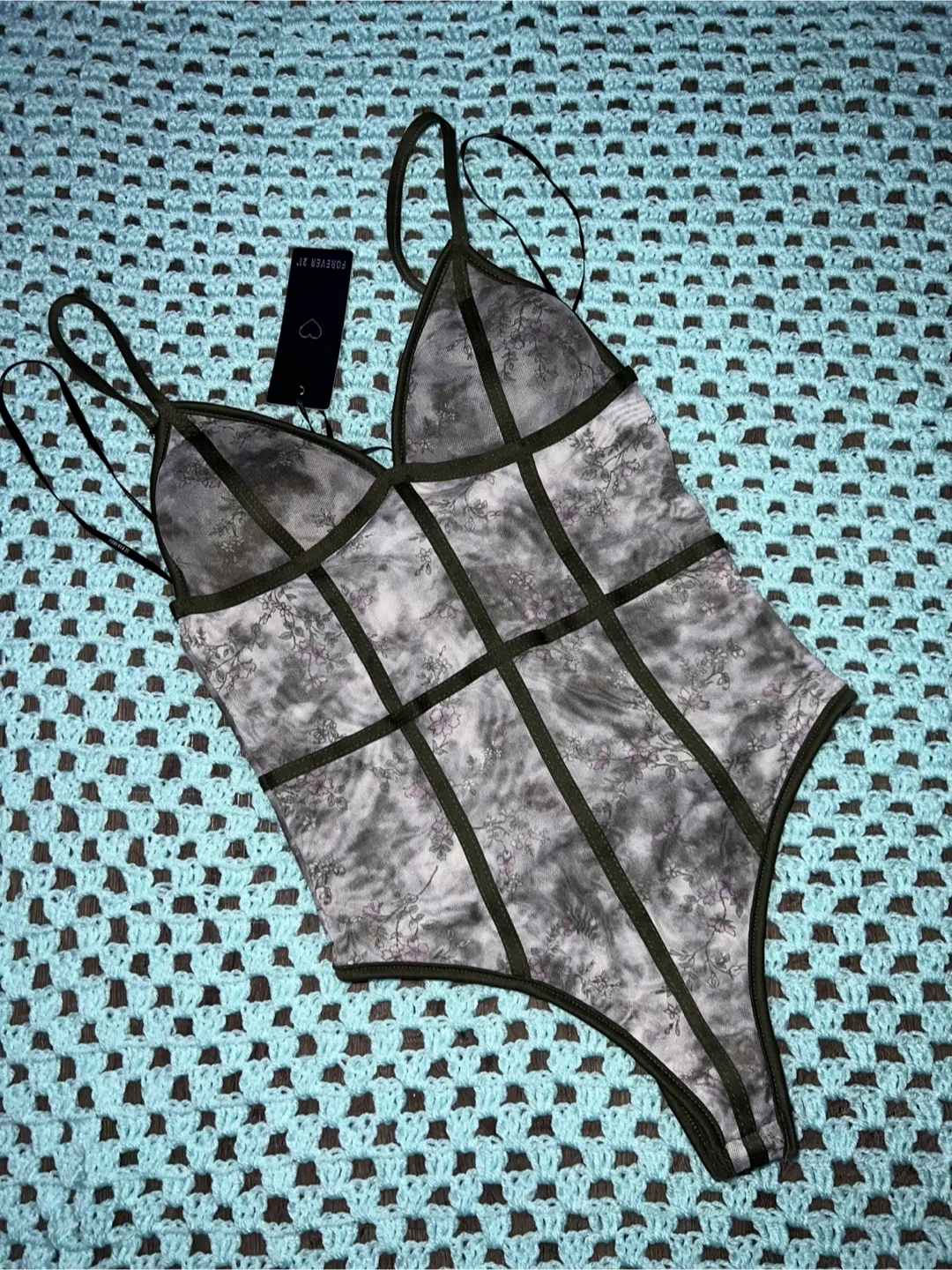 Selling a Forever 21 floral lace bodysuit in size small. It features a delicate floral pattern and lace detailing. Perfect for a night out or a special occasion!