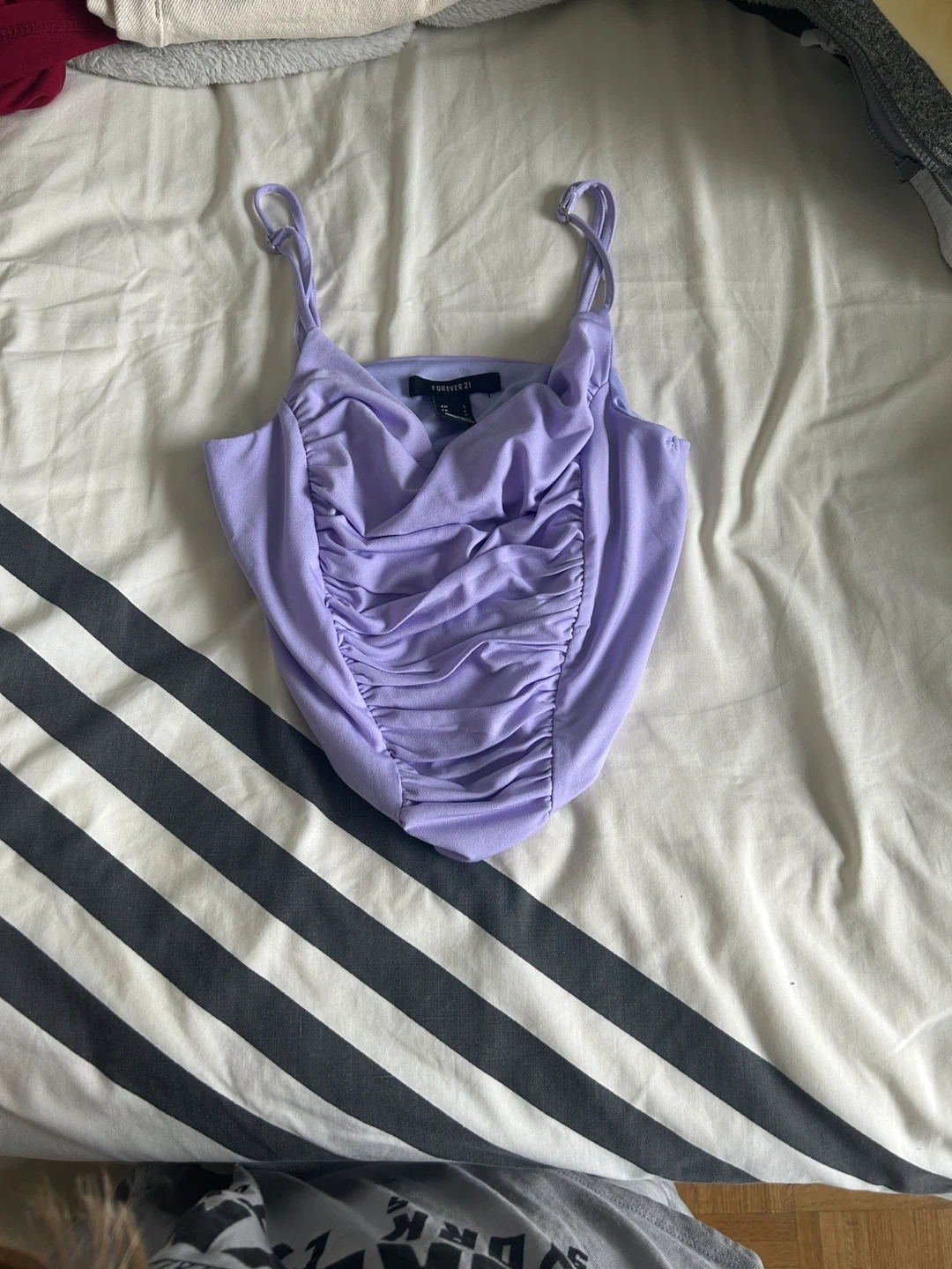 10Selling a cute Forever 21 purple ruched cami top! It's in great condition and perfect for summer. The ruched detailing adds a stylish touch to any outfit. It's a size small.