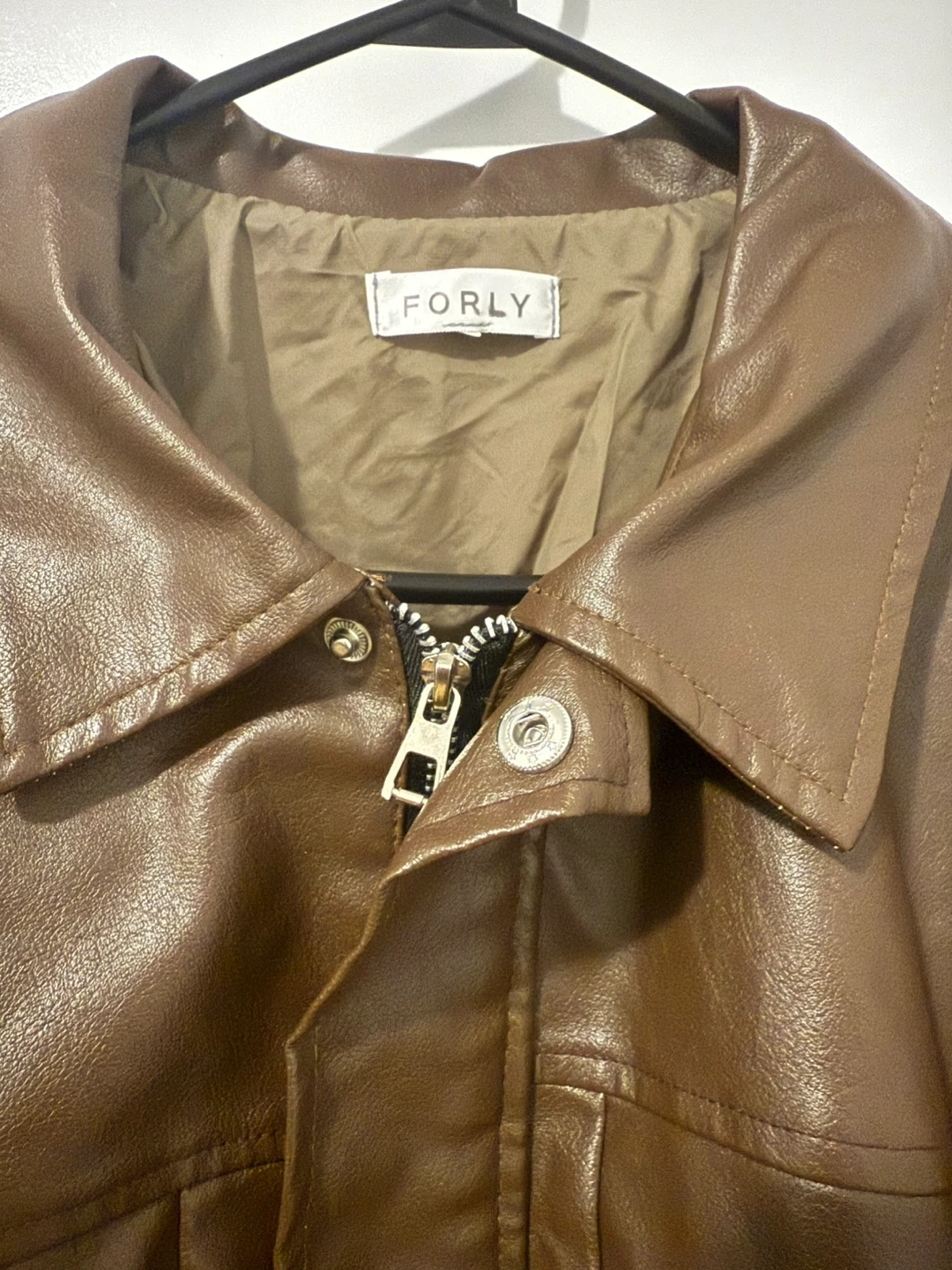 Here's a stylish FORLY brown faux leather jacket! It's in great condition and ready for a new home. Perfect for adding a touch of cool to any outfit Wore once only!