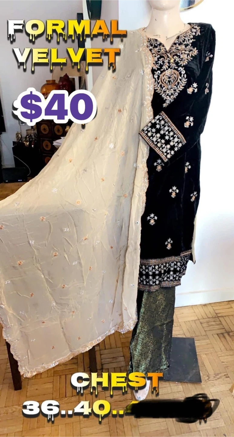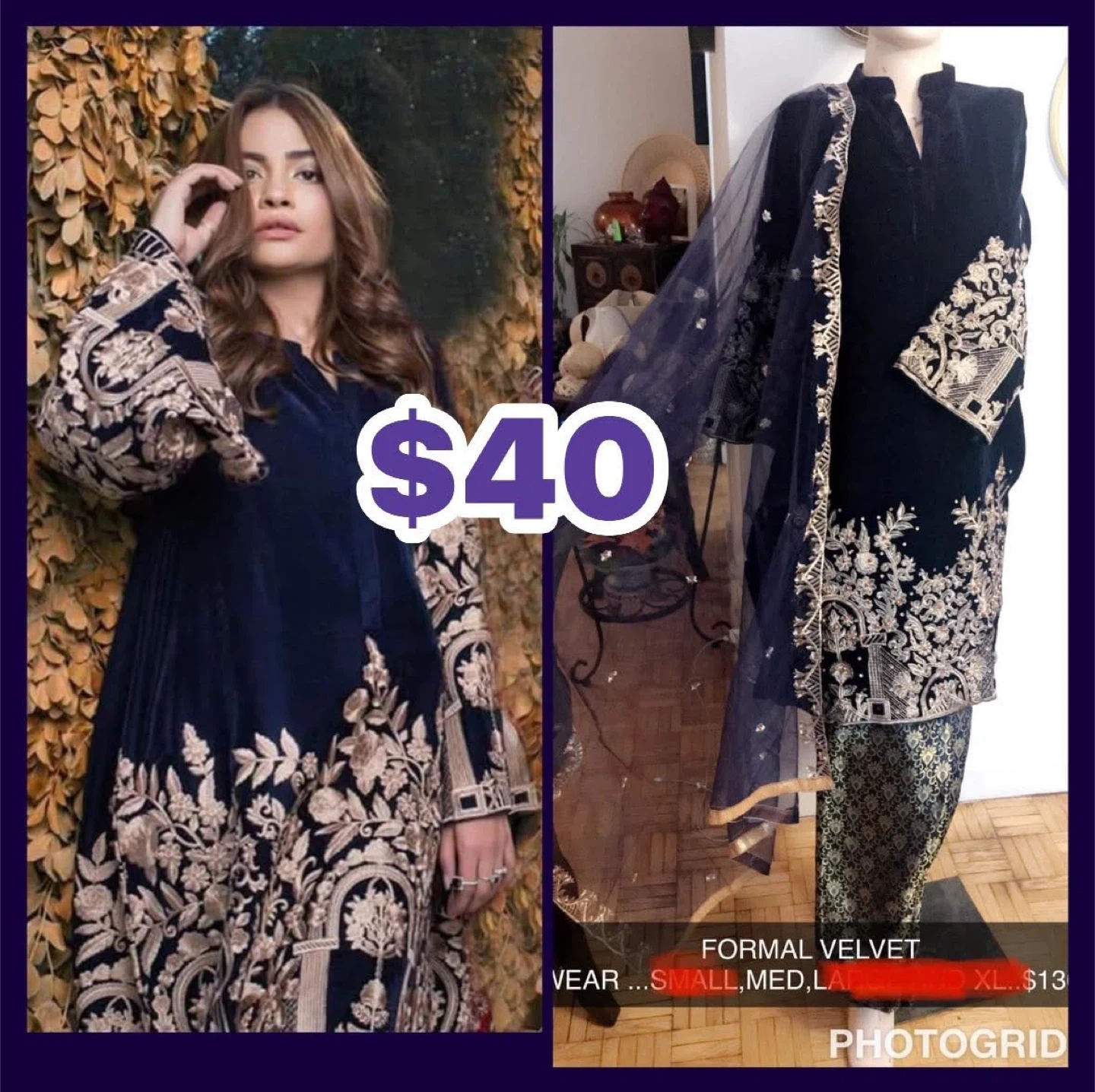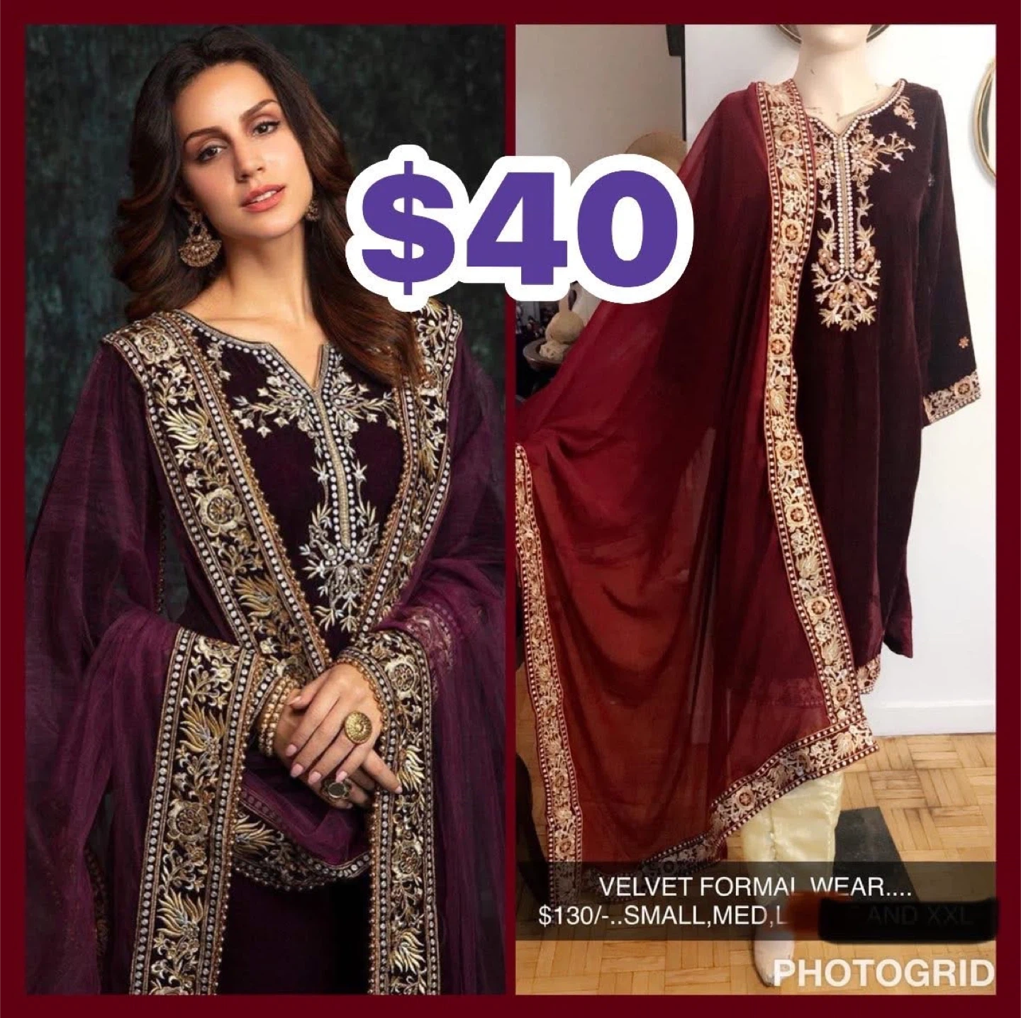 25Selling a beautiful formal wedding collection dress! It features intricate chiffon tila thread and adda work, with a trouser in grip stuff and an embroidered dupatta in chiffon stuff. Size small and in great condition!