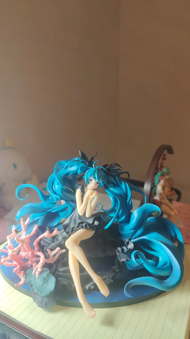 Selling a beautiful Hatsune Miku figure. The figure features Miku with flowing blue hair and a black dress, sitting on a coral-themed base. It's a great addition to any collection!