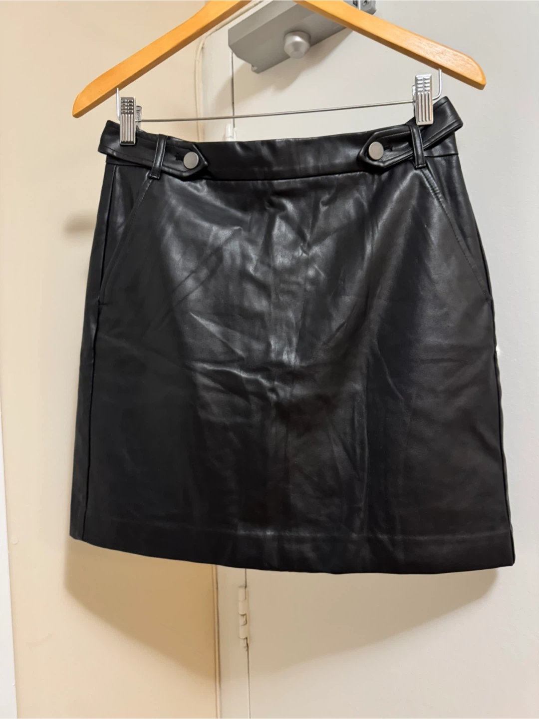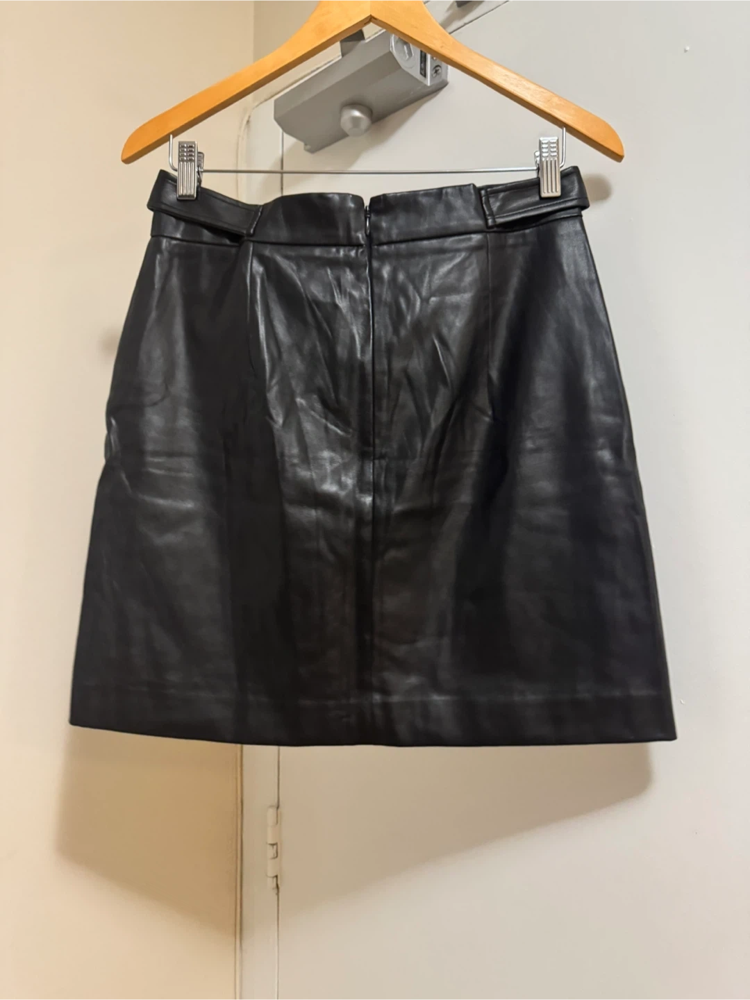 stylish LOFT black faux leather mini skirt. It's never used. The skirt is a size 4.