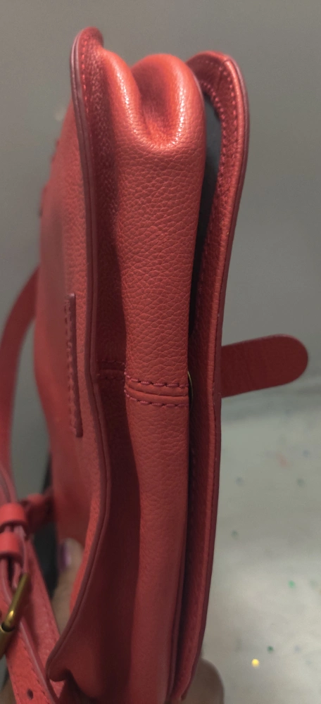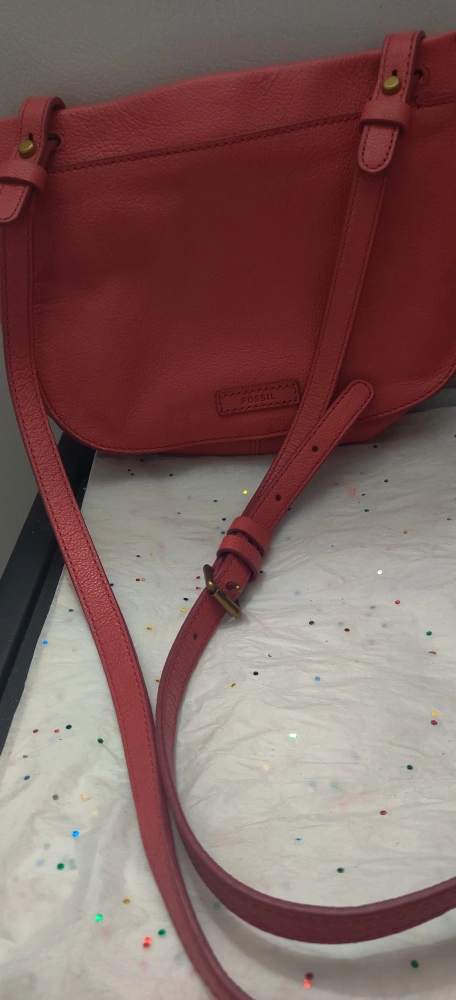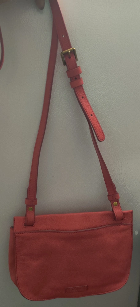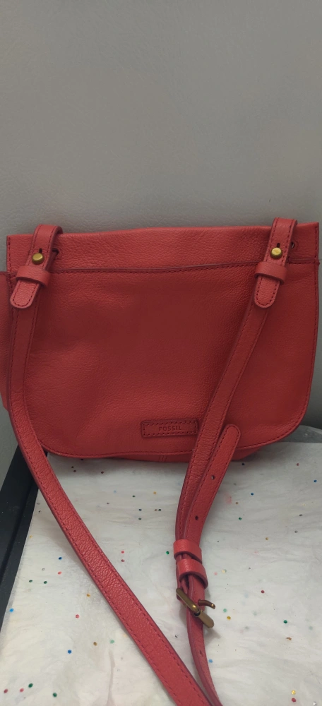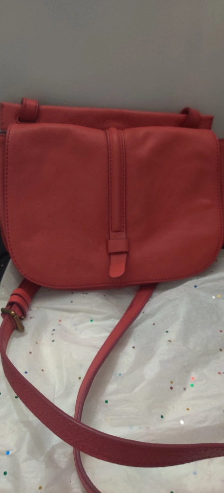 Gorgeous coral red leather crossbody bag. Adjustable strap. Small but functional. Perfect for everyday use.Small Size. 2 seperate compartments. Price is firm.