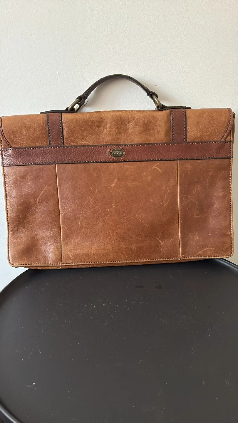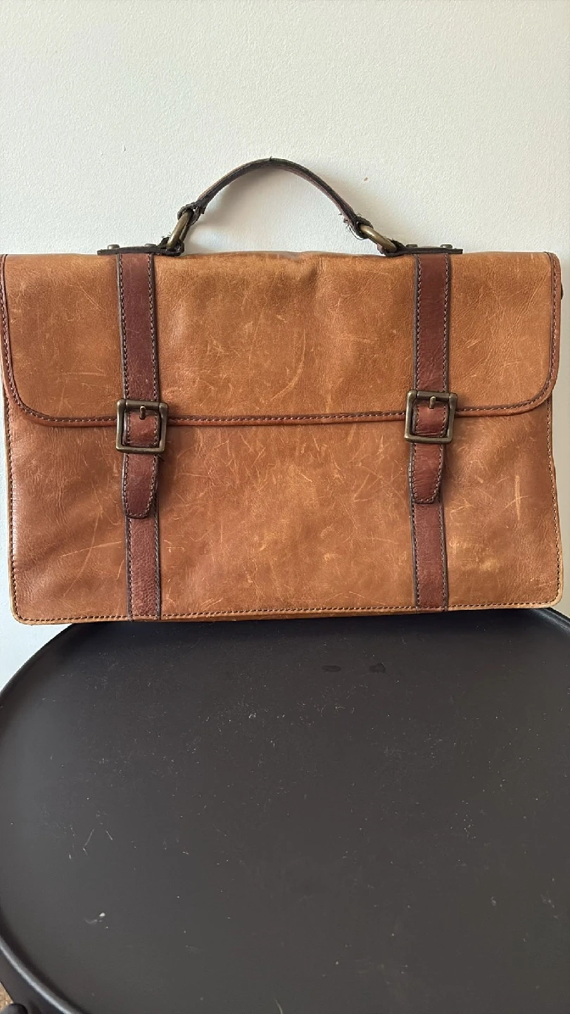 Selling a Fossil leather briefcase in a lovely brown colour. It's in good condition and perfect for carrying your laptop and documents around town. The bag has a handle and buckle closures. No strap.