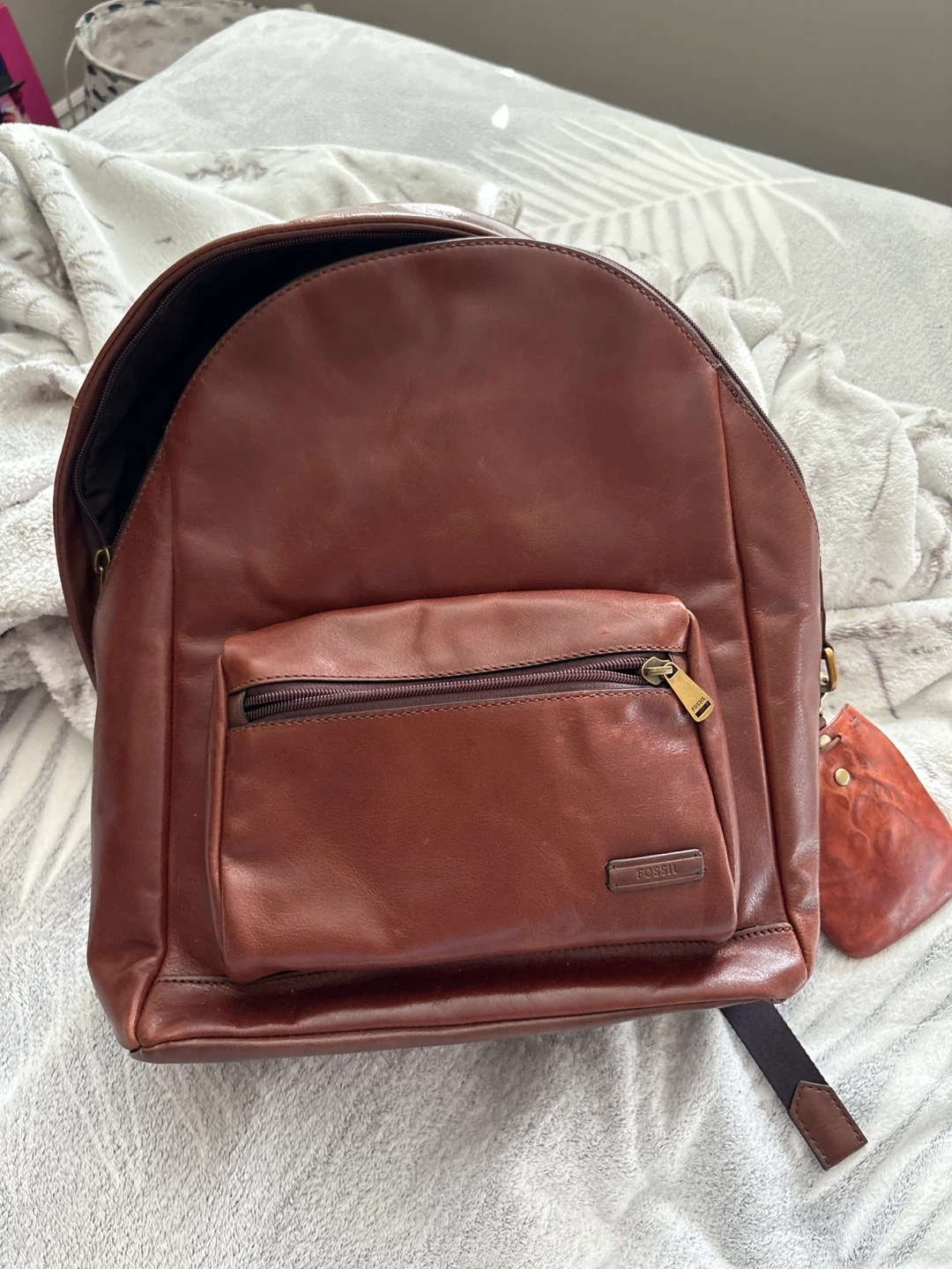 Selling a Fossil leather backpack in a lovely brown colour! It's in great shape and ready for a new home. Perfect for carrying your laptop and other essentials. The tag shows it originally retailed for $509 CAD