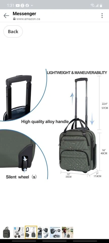 KROSER Carry On Underseat Multi-Functional, 16-inch Underseater Lightweight Overnight Suitcase for Women, Army Green, 16“