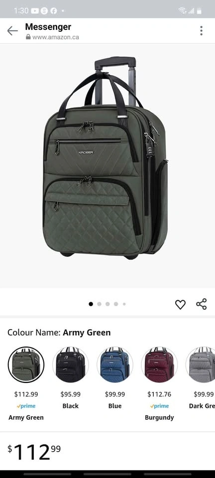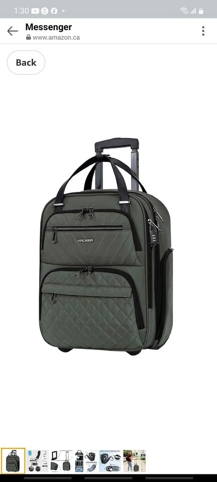 KROSER Carry On Underseat Multi-Functional, 16-inch Underseater Lightweight Overnight Suitcase for Women, Army Green, 16“