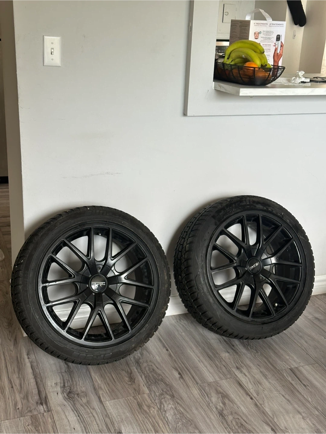 Selling a set of four wheels mounted with winter tires. The tire size is 225/45R18. They are in good condition and ready to be installed for the winter season!