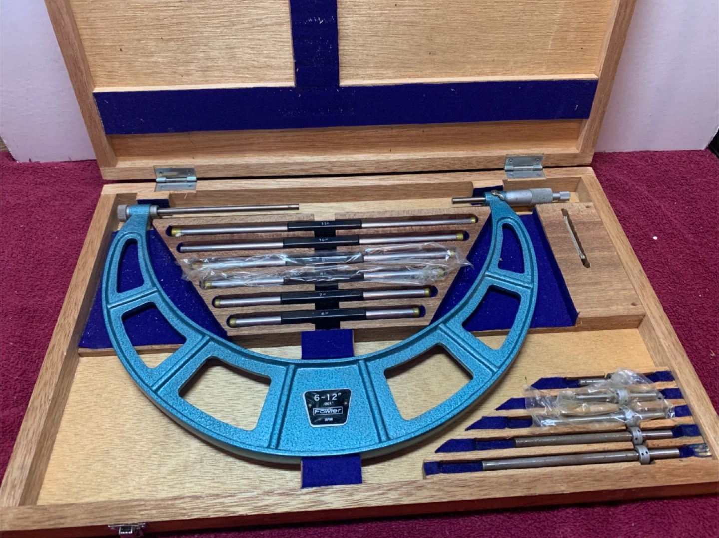 Fowler 6-12 Micrometer, good condition.Wooden case has 1 broken clasp. Pickup in Bolton $225