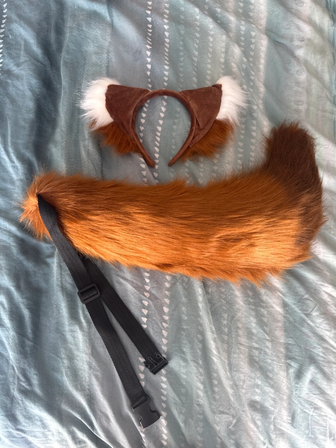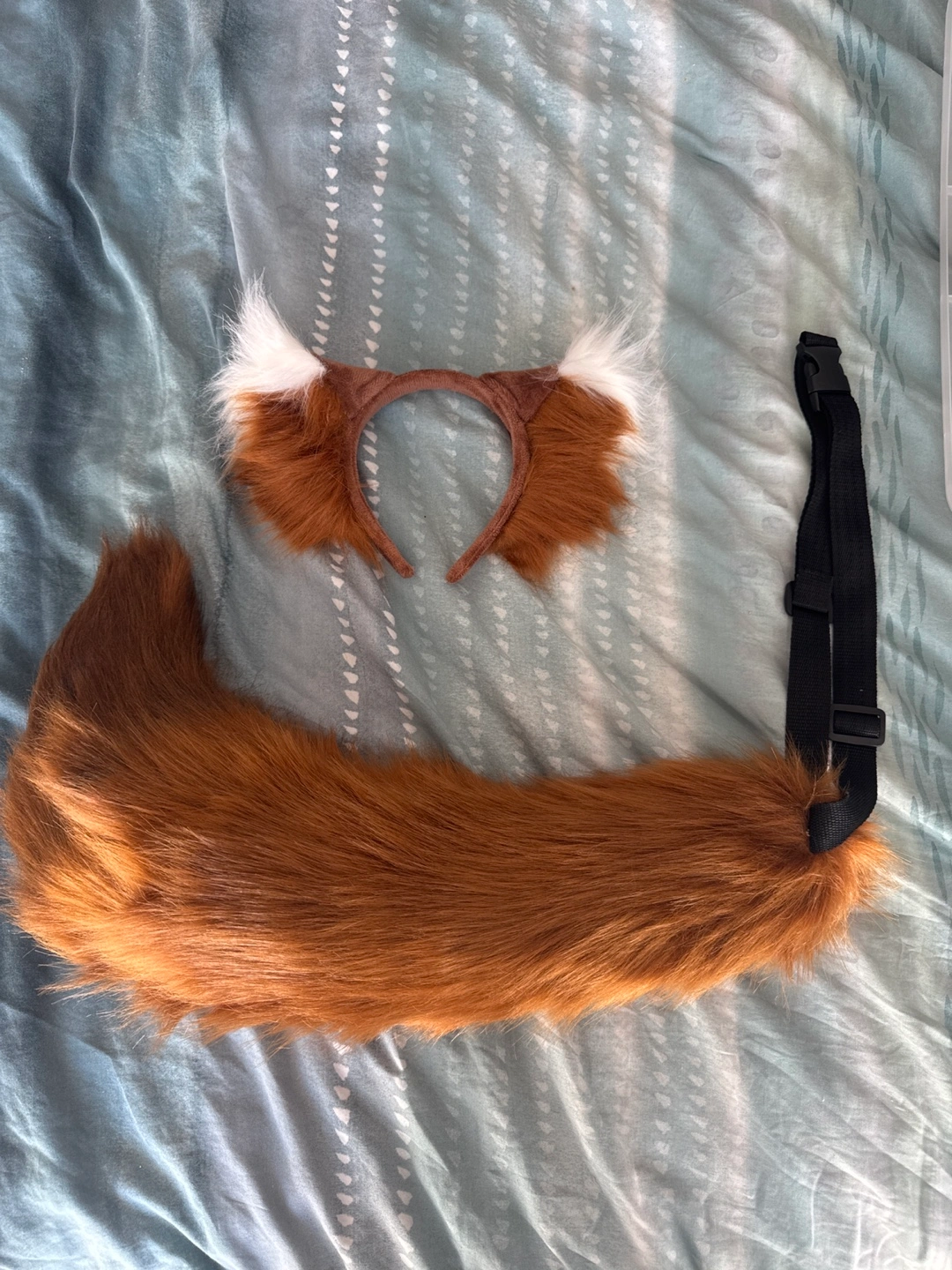 Selling a cute fox ears and tail set! Perfect for costumes or just for fun. The tail has an adjustable strap for easy wear. The ears are attached to a headband for a comfortable fit. The set is in great condition- new and unused. Bought for about 50$ last year. Open to offers.