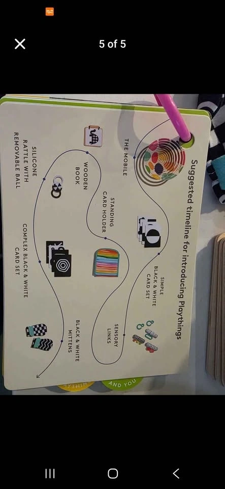 Selling the Lovevery Looker Play Kit (0–3 months), designed to support newborn visual development and early sensory exploration. Includes all original pieces: Wooden black-and-white standing card holder, Simple & complex black-and-white card sets, Silicone rattle with removable ball, Sensory links, Black-and-white mittens, The Looker wooden book, Spiral mobile, Original play guide / inventory card. Condition: Very good, gently used. Clean, no missing pieces. Smoke-free, pet-free home. Pick up: Scarborough - near Morningside and Kingston Rd / Oshawa: Simcoe and Taunton. Drop off also available depending on area. If interested in all boxes, can negotiate price.