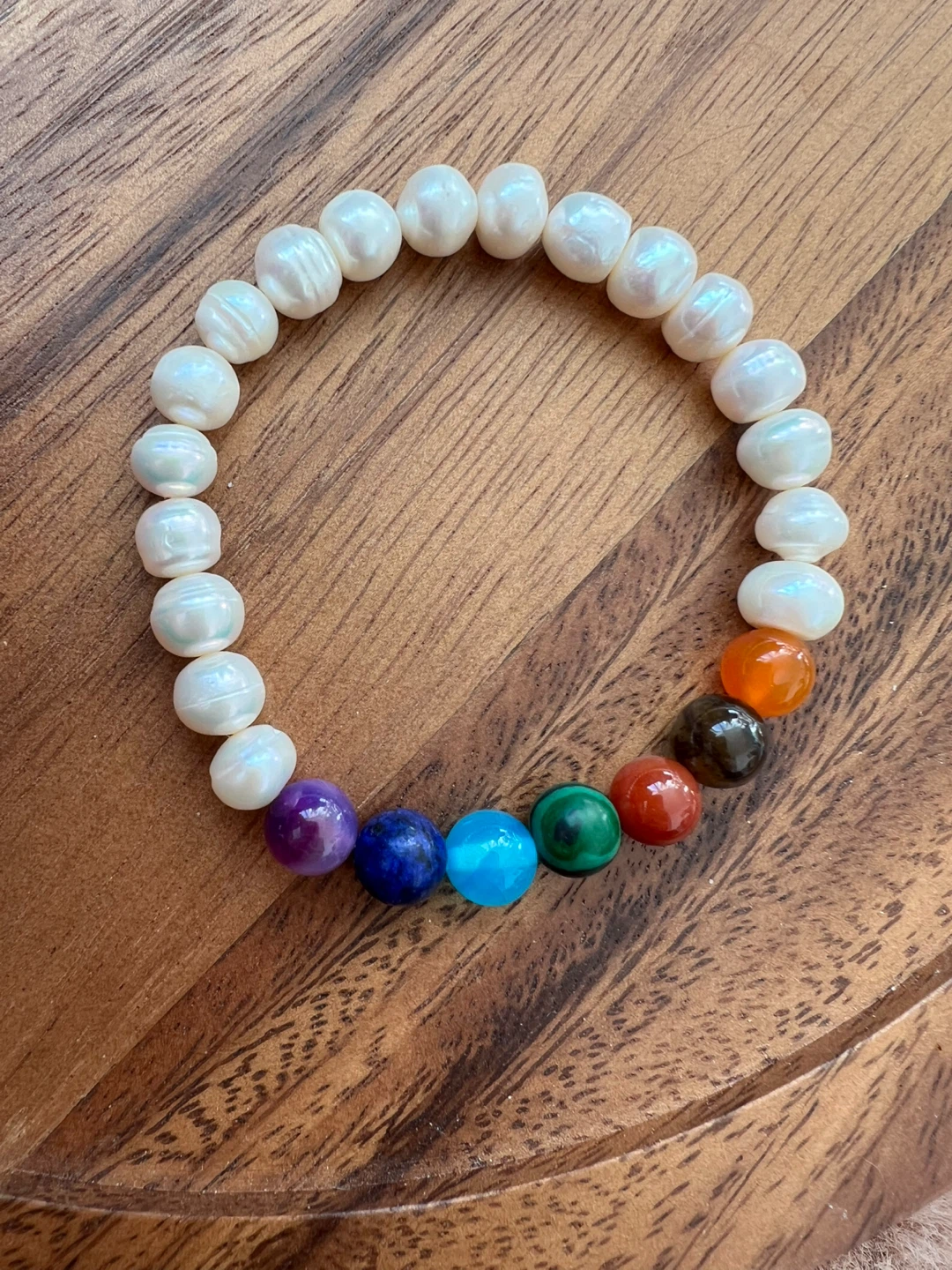 Chakra Bracelet with Semi-Precious Stones and Natural Pearls