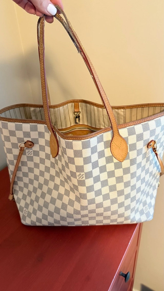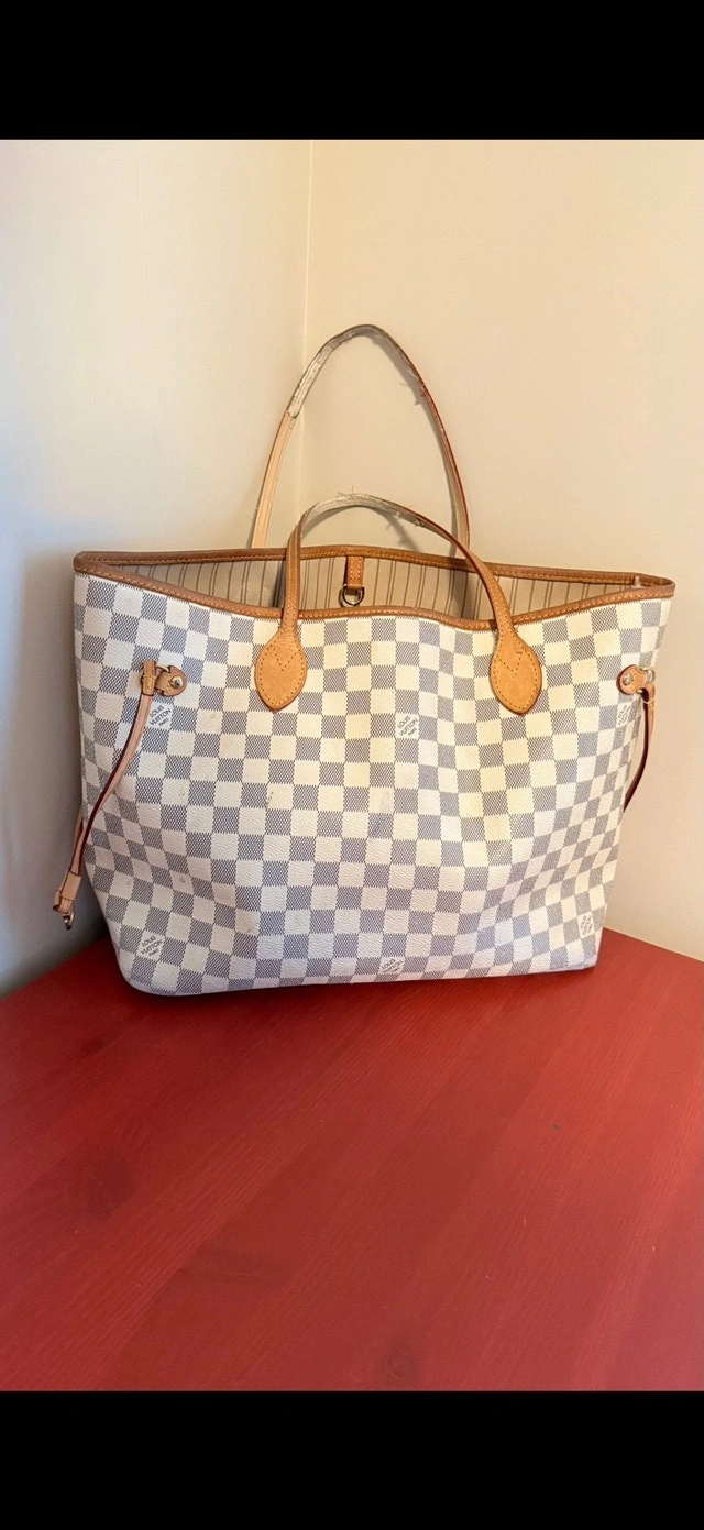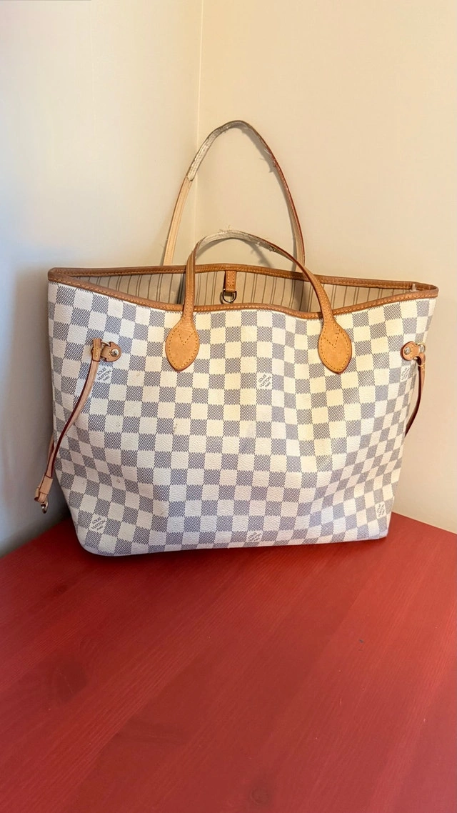 Selling a designer inspired (Neverfull - Medium) tote bag. This pre-loved bag is in fair condition and features the classic canvas, perfect for everyday use. There are some signs of wear on the handles and trim, which are shown in the photos. Also stains on the inside. Cash only. Pick up Mahogany SE. Features: Spacious interior, Adjustable side laces, Gold-tone hardware.
