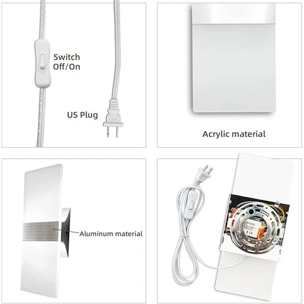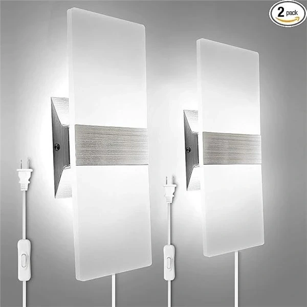 Modern Wall Sconces Set of Two, Led Wall Light 10w, 6000k Warm Light Up Downlight, Hardwired Acrylic Wall Light Lighting, Suitable for Living Room Corridor Bedside