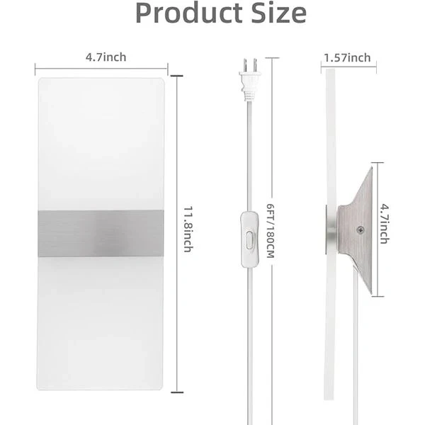 Modern Wall Sconces Set of Two, Led Wall Light 10w, 6000k Warm Light Up Downlight, Hardwired Acrylic Wall Light Lighting, Suitable for Living Room Corridor Bedside