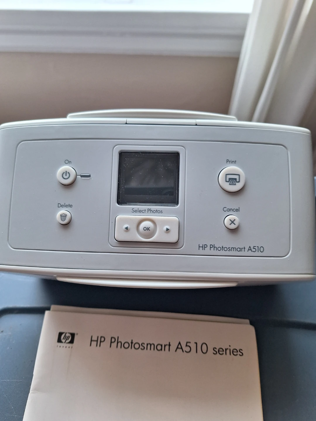 HP Photosmart A510 compact photo printer. It comes with the user guide, software CD, power cord and a carrying case. Great for printing photos at home or on the go. Uses print cartridge tri-colour 110. Pickup Scarborough Pharmacy and Ellesmere area.