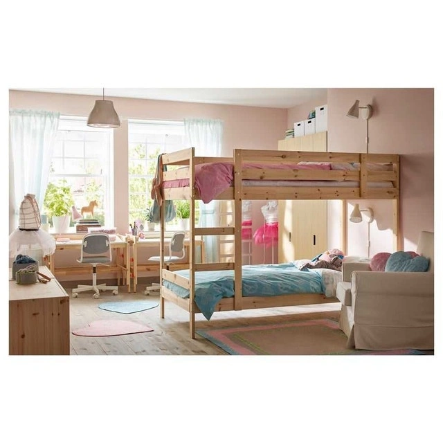 This is a MYDAL bunk bed frame in great used condition, perfect for saving space in a kids' room or a guest room. It features a sturdy pine construction and a classic design. I've taken it apart for easy transport, and all the hardware is included.
