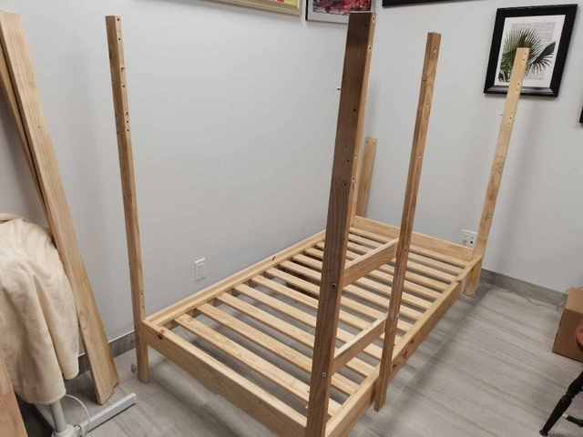 This bed frame is looking for a new home where it can provide sweet dreams and imaginative adventures! If the ad is still up, it's still available! Comes with two allen keys, lots of bolts nuts and I can teach you how to assemble if needed.