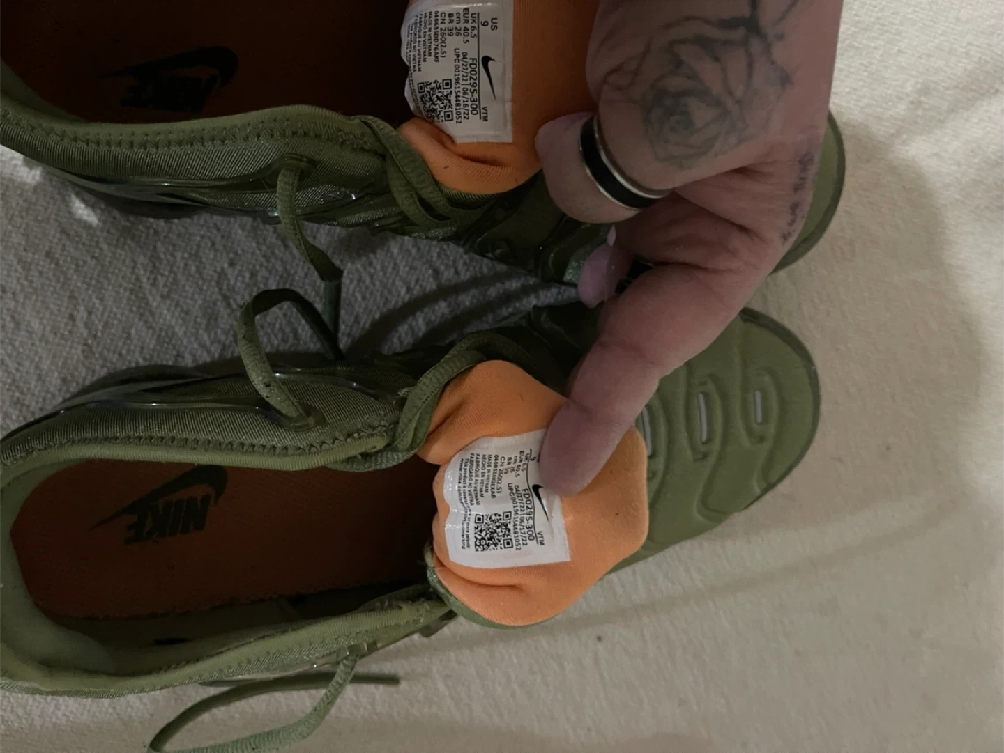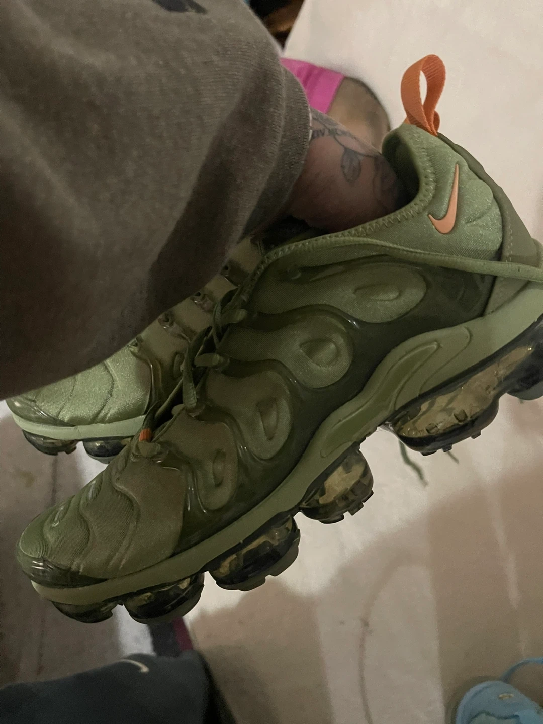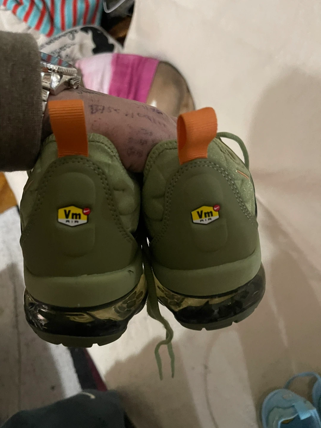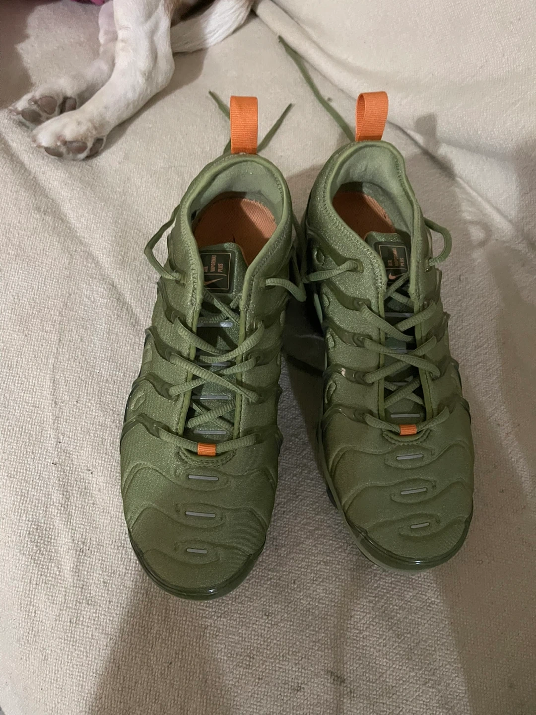 Selling a pair of Nike vapormax Plus Alligator Greens LTDs . They are in good condition and ready for a new owner! Features the iconic design and comfortable cushioning that the vapormax Plus is known for! They’re green and orange color…Brand new never worn size 8.5 women’s or men’s these came out as unisex when first dropped!! Box looking for it I believe it broke but regardless I can give you another 1 of vapormax boxes (clicked on men but these like the 1st evo max dropped are unisex men and women size 8.5)