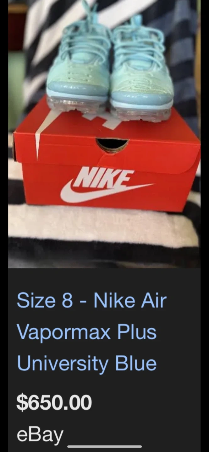 Selling a pair of Nike vapormax Plus Alligator Greens LTDs . They are in good condition and ready for a new owner! Features the iconic design and comfortable cushioning that the vapormax Plus is known for! They’re green and orange color…Brand new never worn size 8.5 women’s or men’s these came out as unisex when first dropped!! Box looking for it I believe it broke but regardless I can give you another 1 of vapormax boxes (clicked on men but these like the 1st evo max dropped are unisex men and women size 8.5)