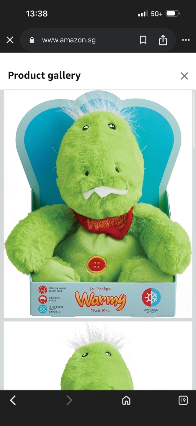 This is a Warmy Magic Bag, a plush toy designed for comfort and relief. It's suitable for tummy aches, chills, bumps, and bruises. It can be used warm or cold.