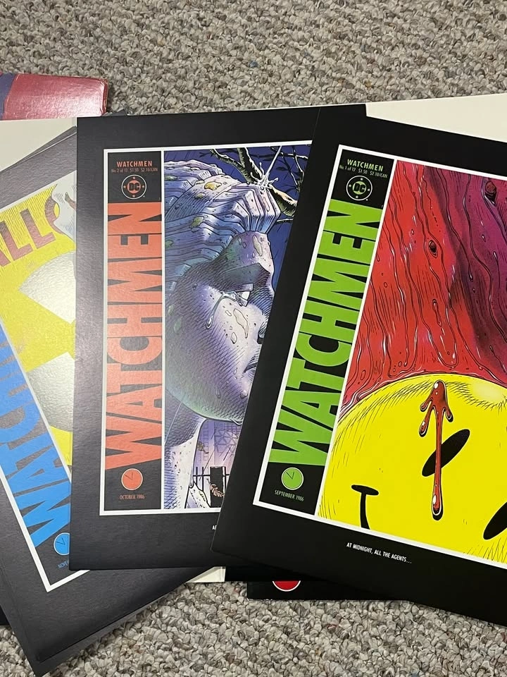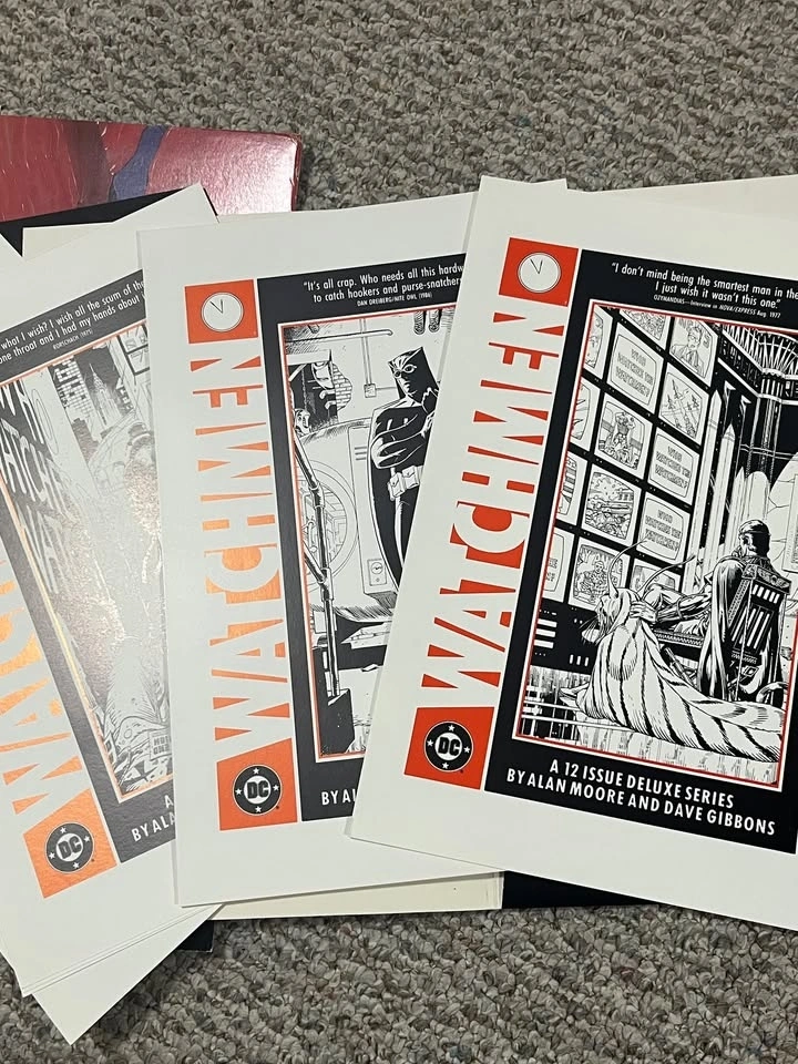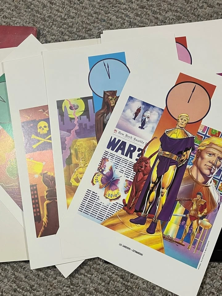 This is a great Watchmen portfolio art set, with American, French, and Promotional posters. Perfect for Alan Moore and Watchmen fans. Too many posters to show on marketplace. You can find this online and see what is included.