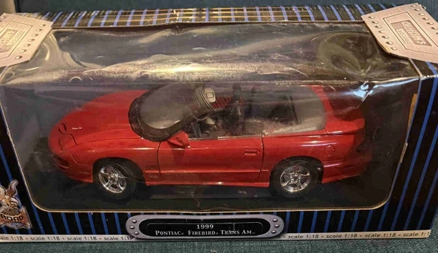 Own a piece of automotive history with this 1:18 scale 1999 Pontiac Firebird Trans Am diecast model. It's a real beauty that captures the sleek lines and sporty essence of the iconic Firebird. This model is in new condition, still nestled in its original packaging, making it a great addition for collectors and enthusiasts alike. This sweet ride is looking for a new home! If the ad's still up, the diecast is still available, so feel free to reach out!