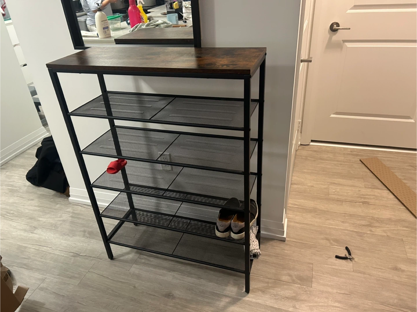 5-Tier Industrial Shoe Rack with Wood Top