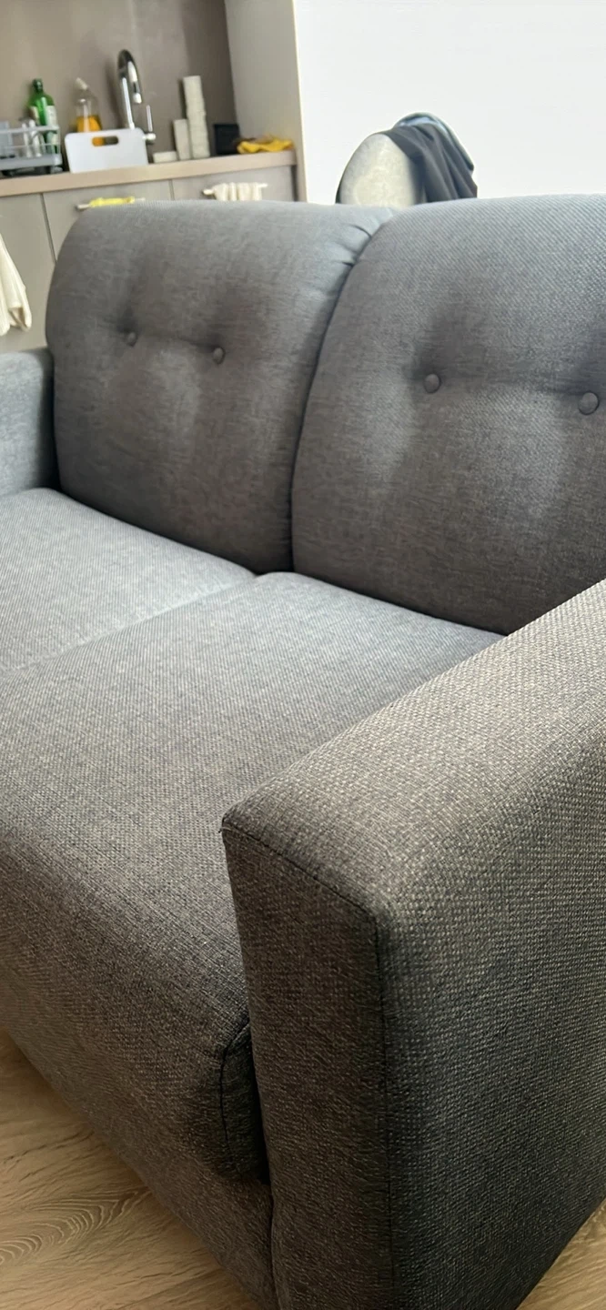 Selling a grey Merlin loveseat! It's in great shape and would be perfect for a smaller space. It's made in Canada and was originally bought for $979. It has a classic design that would look great in any home.
