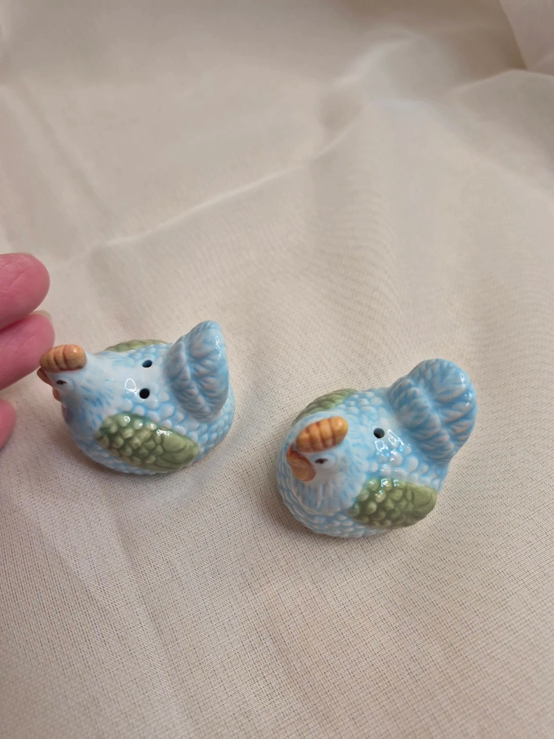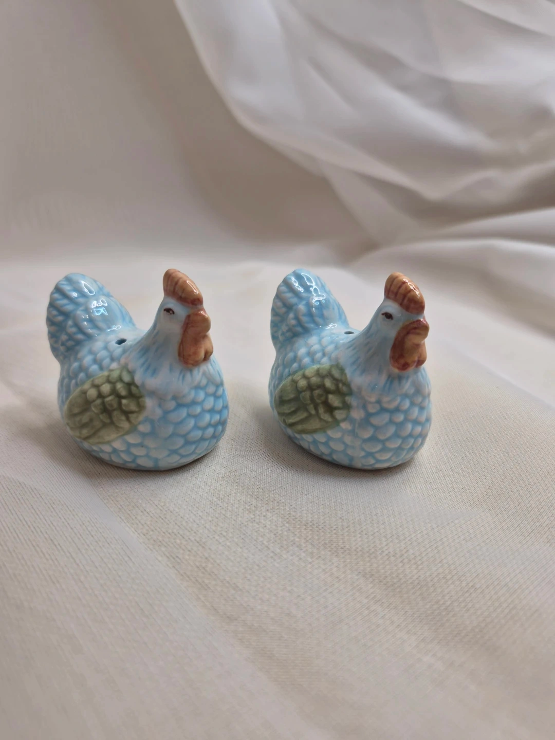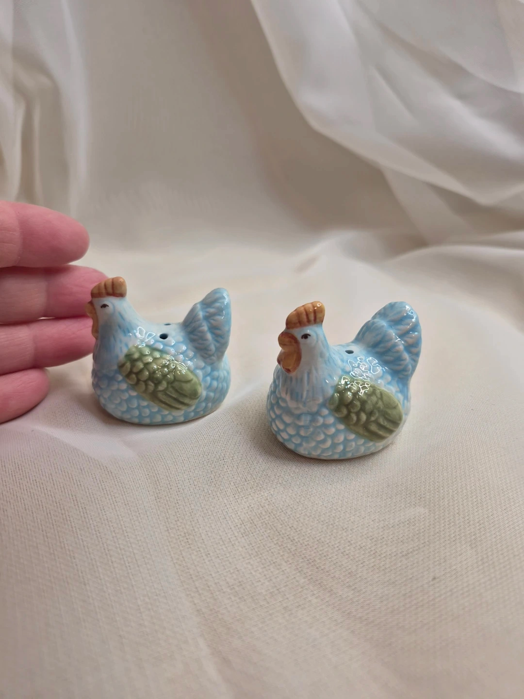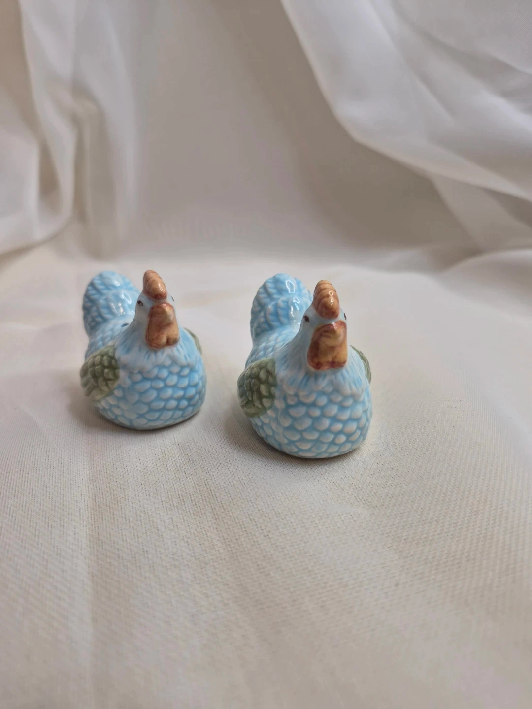 So Cute Vintage Blue Ceramic Chicken Hen Little Salt & Pepper Set - Brand New without Tags/Box please see all pictures