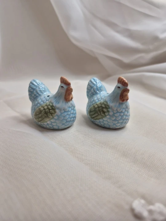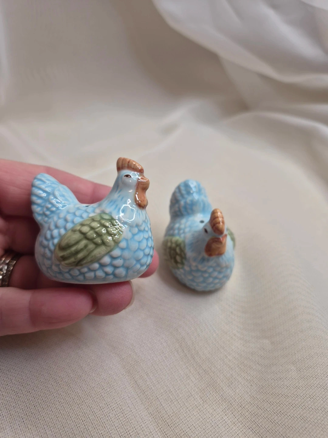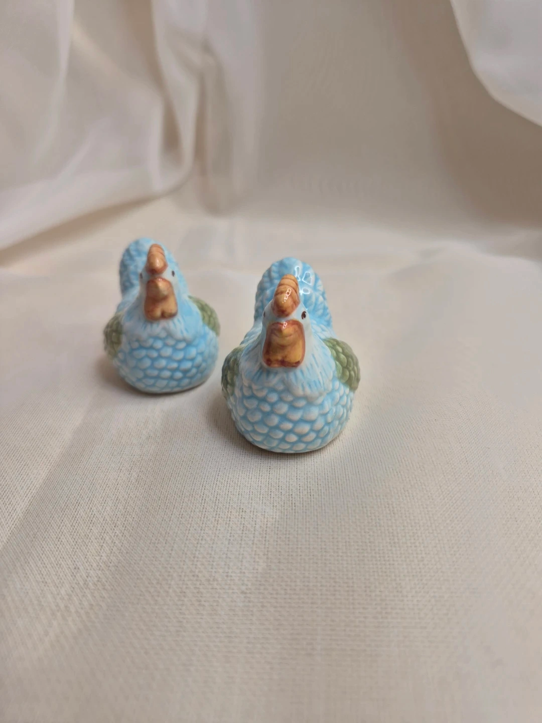 So Cute Vintage Blue Ceramic Chicken Hen Little Salt & Pepper Set - Brand New without Tags/Box please see all pictures