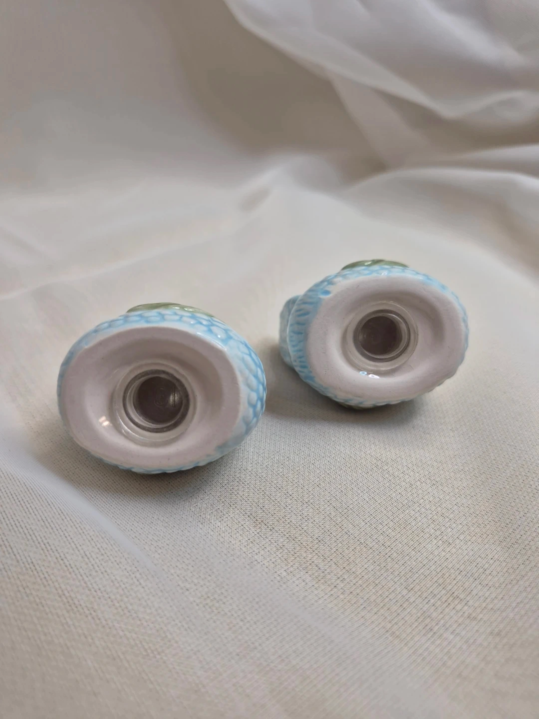 So Cute Vintage Blue Ceramic Chicken Hen Little Salt & Pepper