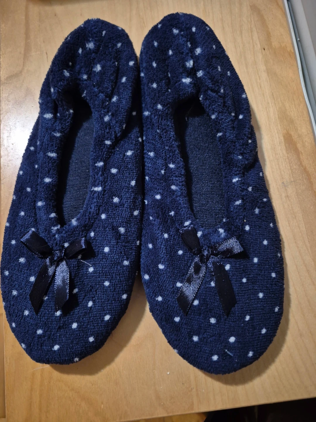 Blue Polka Dot Slippers - Size M (7-8)