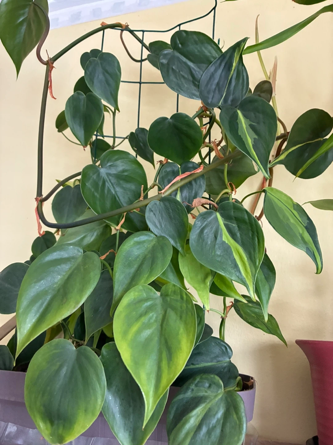 A beautiful, established Heartleaf Philodendron plant with lush green leaves. It's currently growing and vining on a support structure. This plant adds a natural touch to any indoor space!