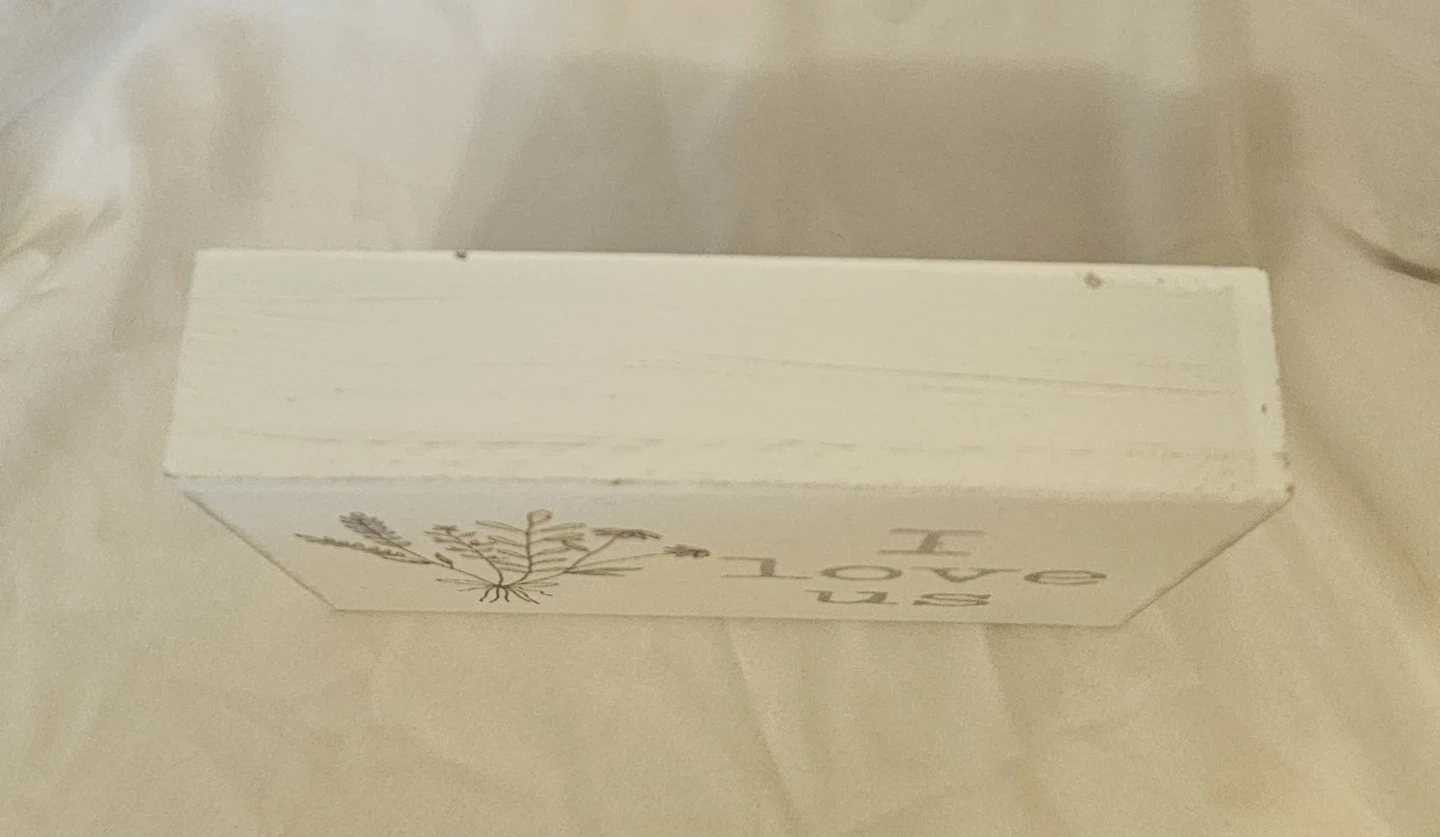This Multi-Coloured Quill to Paper by Sixtrees Floral "I Love Us" Wooden Decorative Plaque is Brand New and never used. Tags attached.
