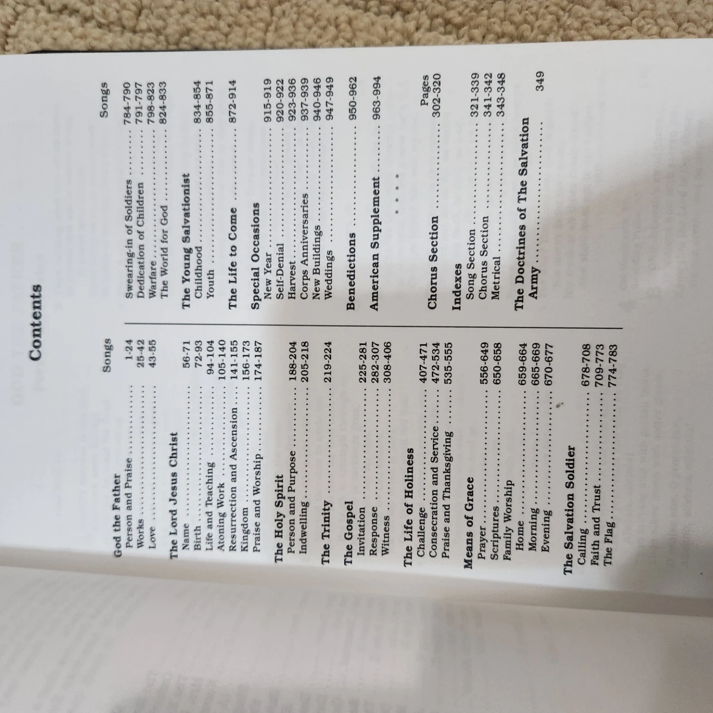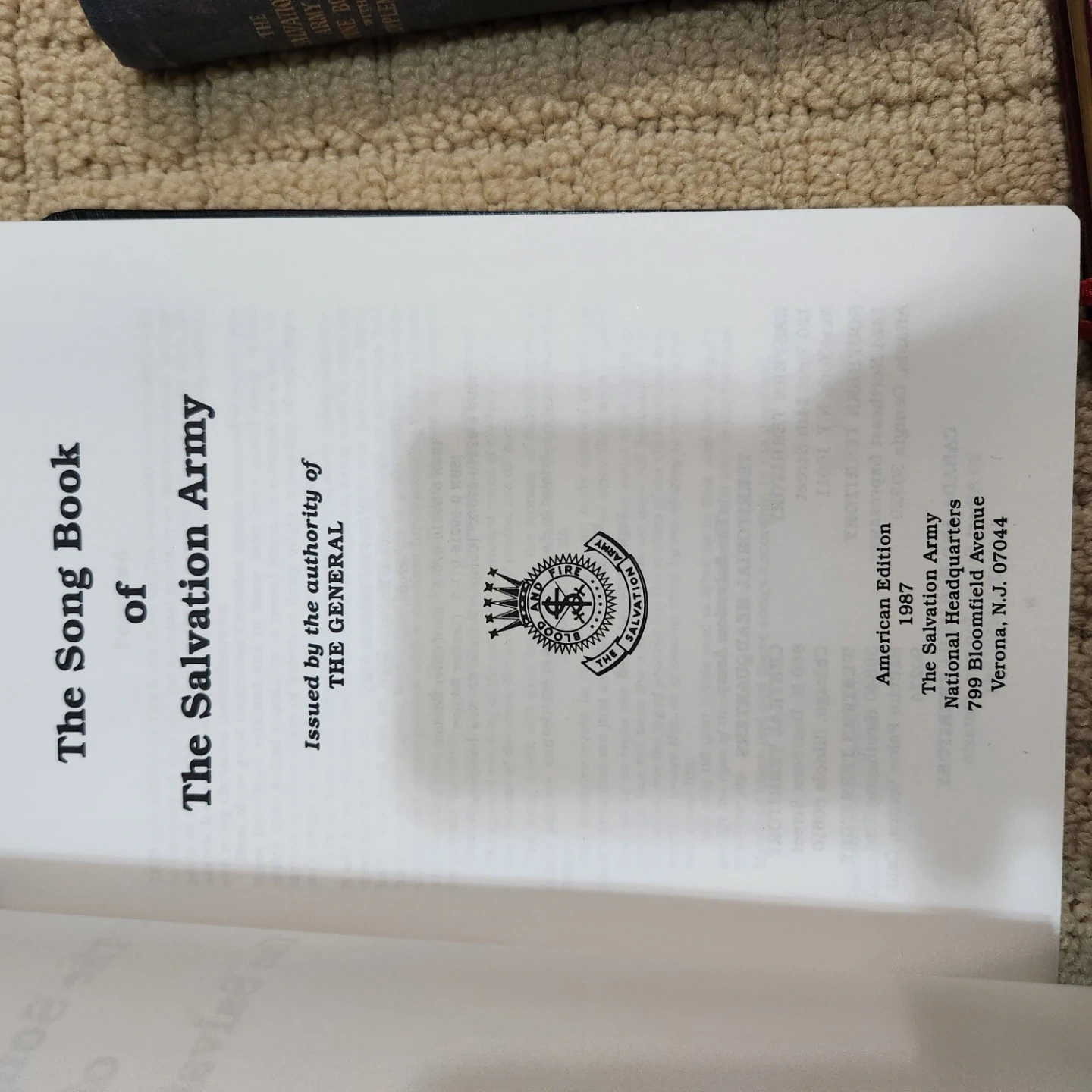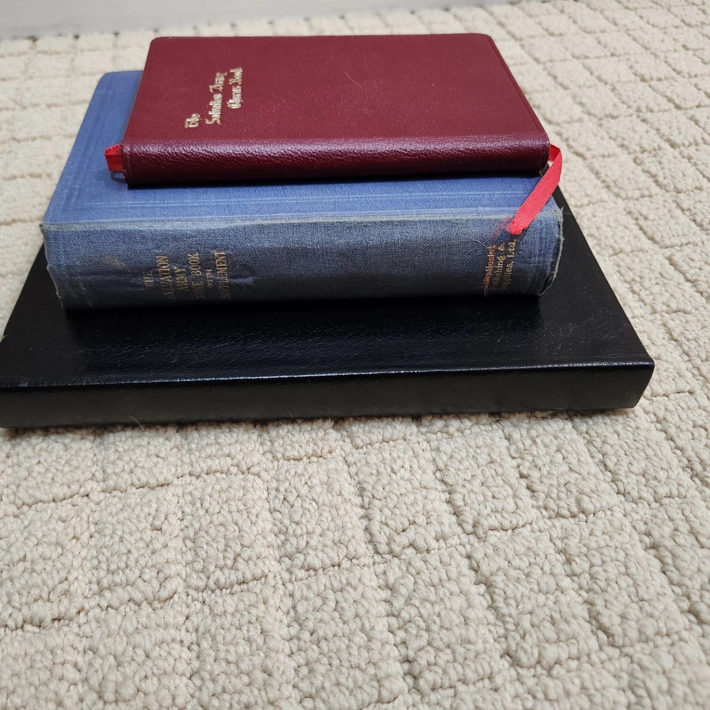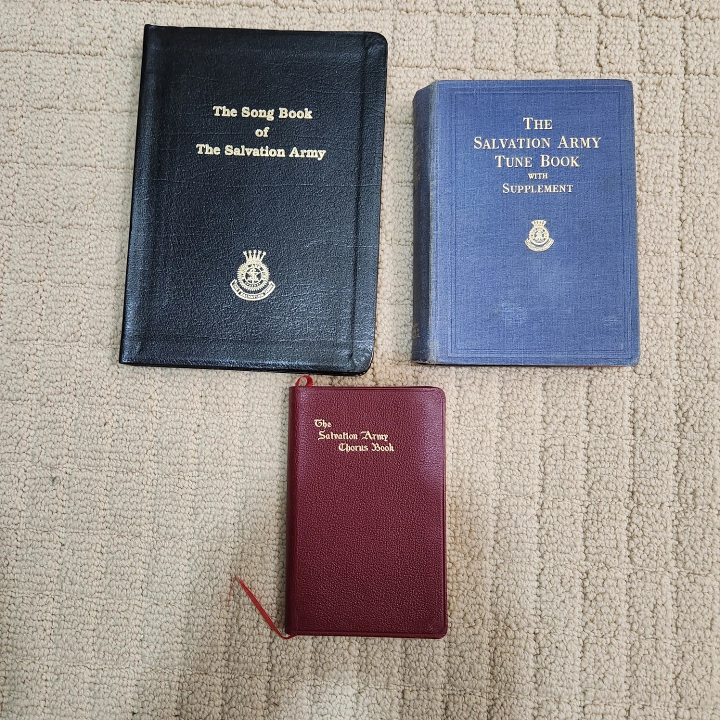Includes "The Song Book of The Salvation Army", "The Salvation Army Tune Book with Supplement", and a smaller "The Salvation Army Chorus Book". Copyright dates include 1987 for the American Edition of the Song Book. These books are from The Salvation Army organization. Useful for song services and general congregational singing.