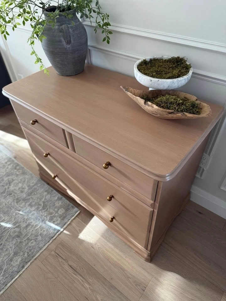 Old finish was completely removed, new custom finish applied and sealed several time for durability.