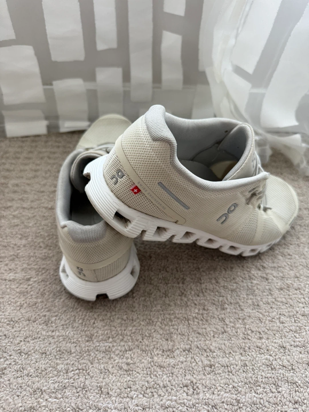 Selling a pair of On Cloud running shoes in a neutral beige colour. They are in great condition and ready for a new home! Size is US 8. These shoes are known for being lightweight and comfortable, perfect for running or everyday wear