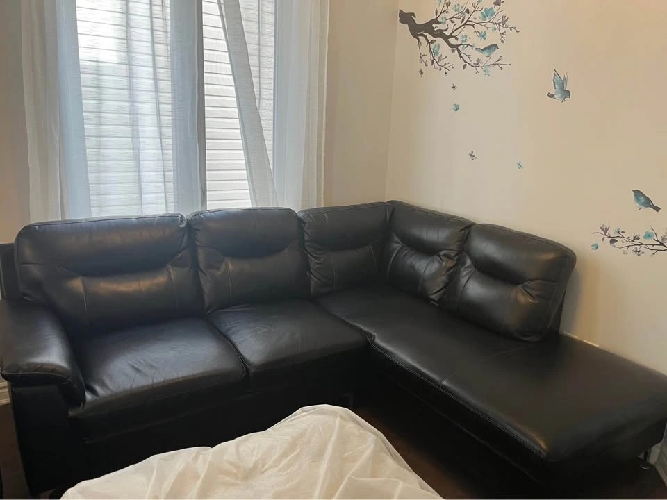 Right facing 4 seater sectional sofa from The Brick. In good condition. No fabric and no maintenance required. Comes with steel legs. Very sturdy and comfortable and served us well for couple of years when our toddler was growing. Comes in 2 pieces for pickup and has a latch to connect them and vice versa. We are updating our furniture to 6 seater and need to sell the soon to make space. Full disclosure - has a mild tear. Originally bought from The Brick. Pickup only. Location - Stittsville.