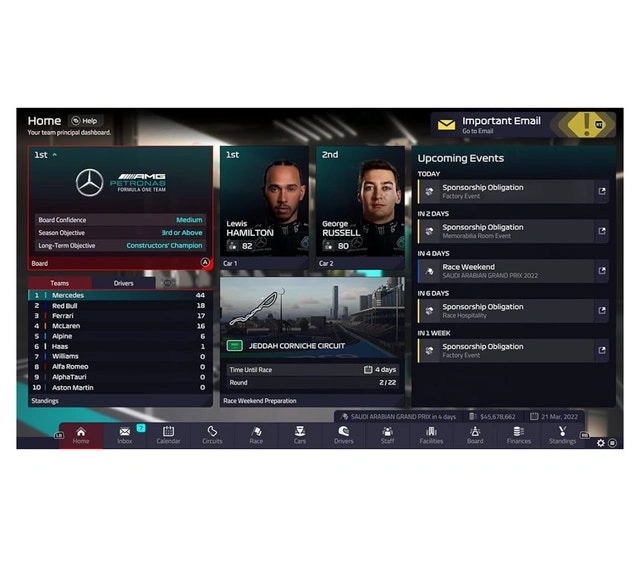 The Career – Become the Best: Write a new chapter in a bold new era for Formula 1. Choose your F1 team and guide them to glory throughout the official 2022 races. Your task is to impress the board by hitting your season targets and long-term goals, securing your team’s success for years to come.