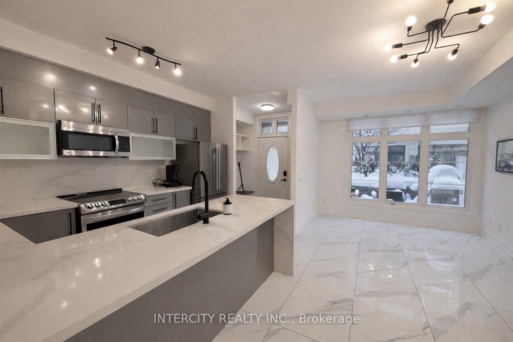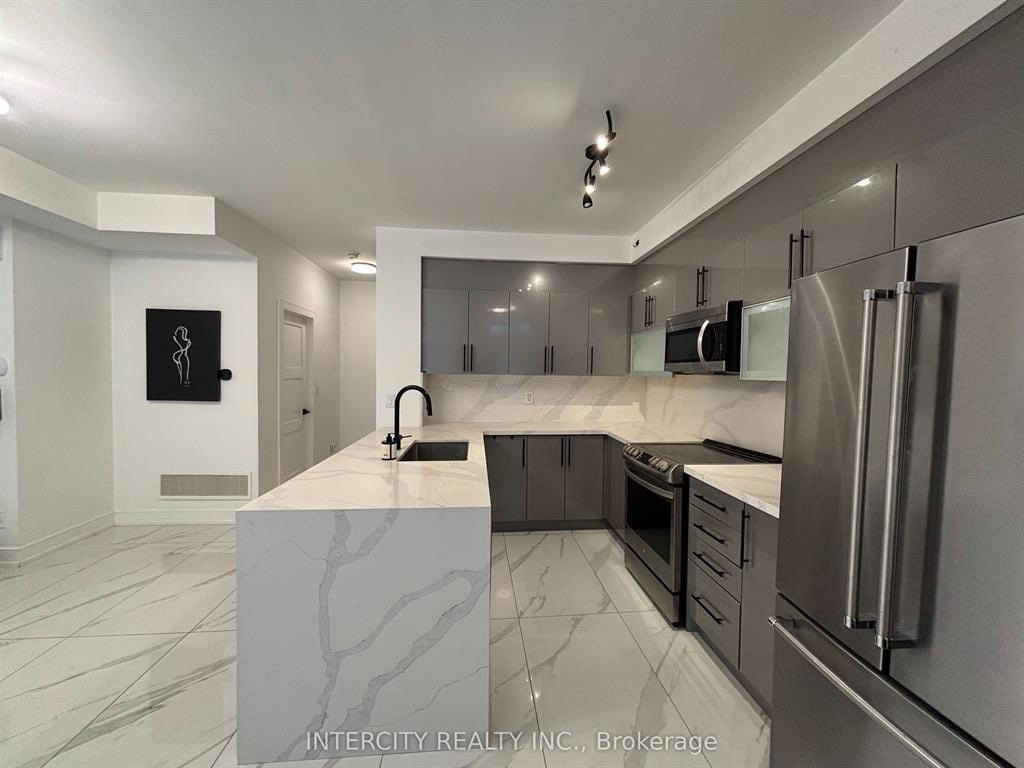 Remarkable freehold executive townhouse located in prestigious Thornhill. This beautifully appointed home features 9-ft ceilings on the main level, hardwood flooring throughout, granite countertops, marble backsplash, and stainless steel appliances. Enjoy an exceptional layout with a primary bedroom open balcony and a main-level patio-perfect for indoor-outdoor living. Includes two underground parking spaces with direct access to the basement. Tenant enjoys access to upscale condo-style amenities, including a fully equipped gym, water spa, theatre room, party room, and guest suites. Prime location close to shops, dining, transit, and major highways.