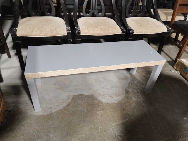 This grey coffee table is in good condition and ready to add a touch of modern simplicity to your living room. With its clean lines and neutral colour, it fits seamlessly into any decor. It's the perfect spot for your morning coffee, books, or displaying your favourite decor items. This table has some wear and tear. If the ad is up, it's available!